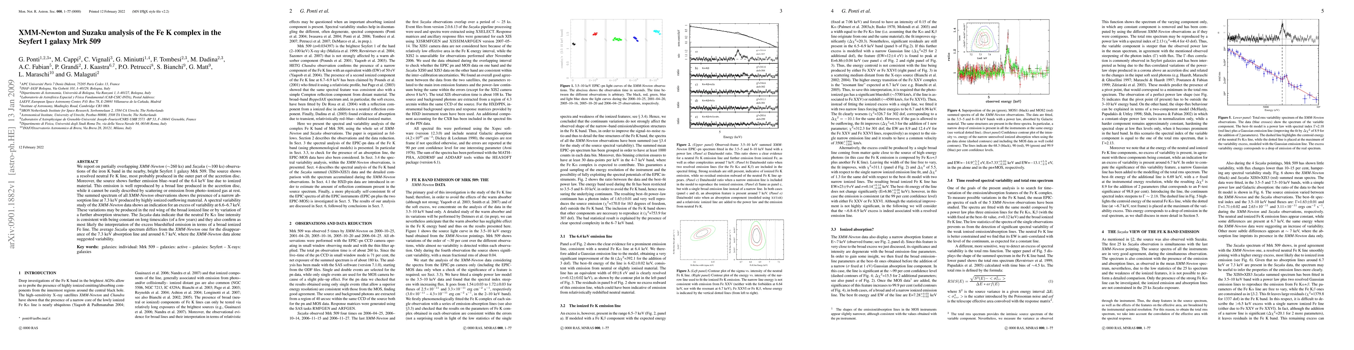 Researchers analyzed XMM-Newton and Suzaku data from the Seyfert 1 galaxy Mrk 509, finding a resolved neutral Fe K line produced in the outer accretion disc and further blue-shifted emission from ionized material.