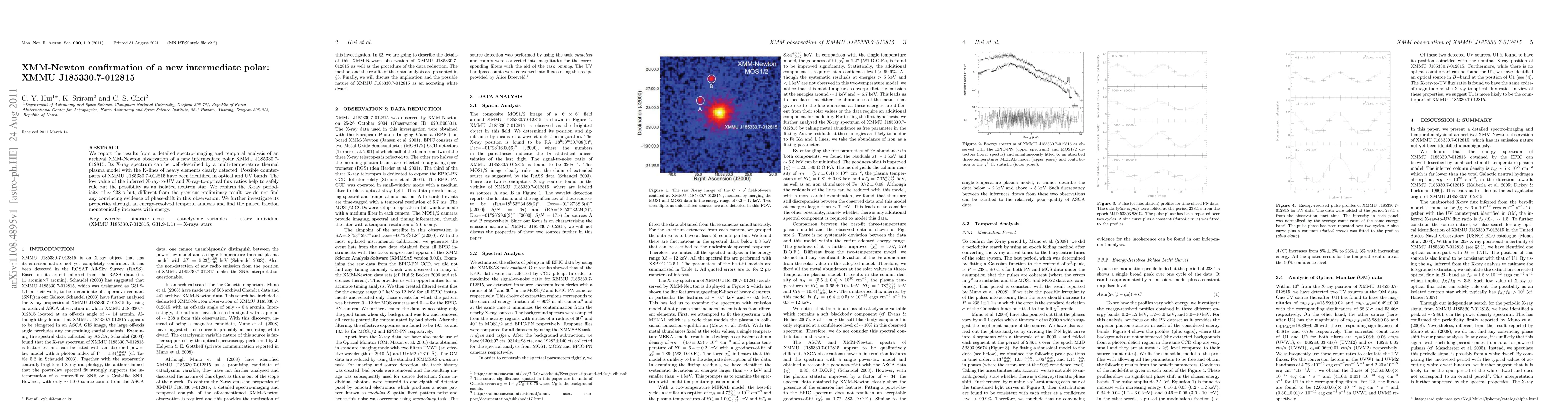 The XMM-Newton observation confirms XMMU J185330.7-012815 as a new intermediate polar. Its X-ray spectrum matches a multi-temperature plasma model with heavy element K-lines, and no phase-shift was found in the ~238s X-ray periodicity. The pulsed fraction increases with energy, ruling out an isolated neutron star as a counterpart.