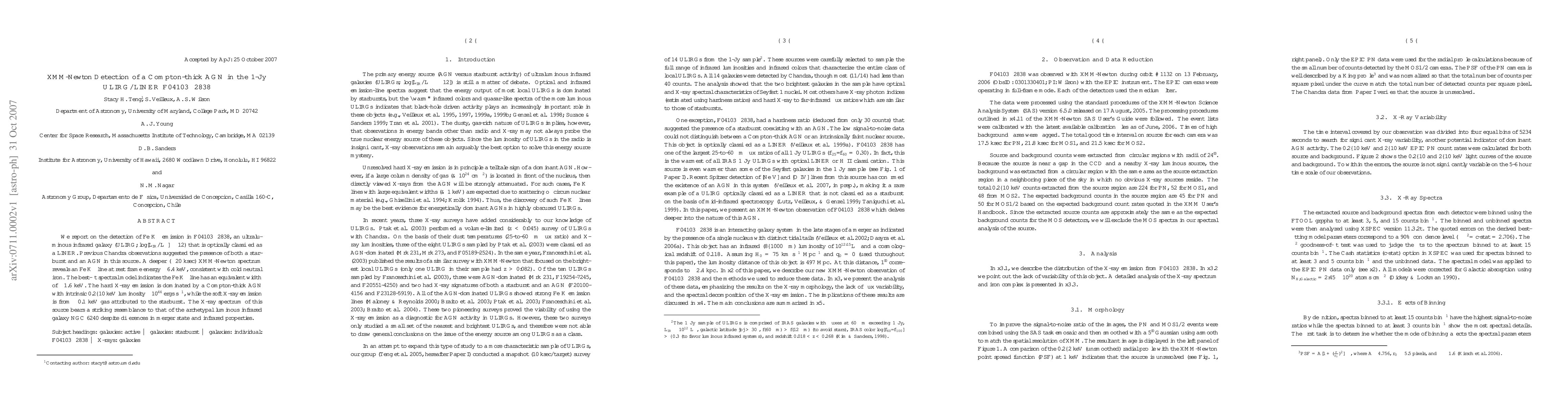Astronomers used XMM-Newton to detect Fe Kalpha emission in a galaxy with both starburst and AGN activity, finding a Compton-thick AGN with high luminosity.