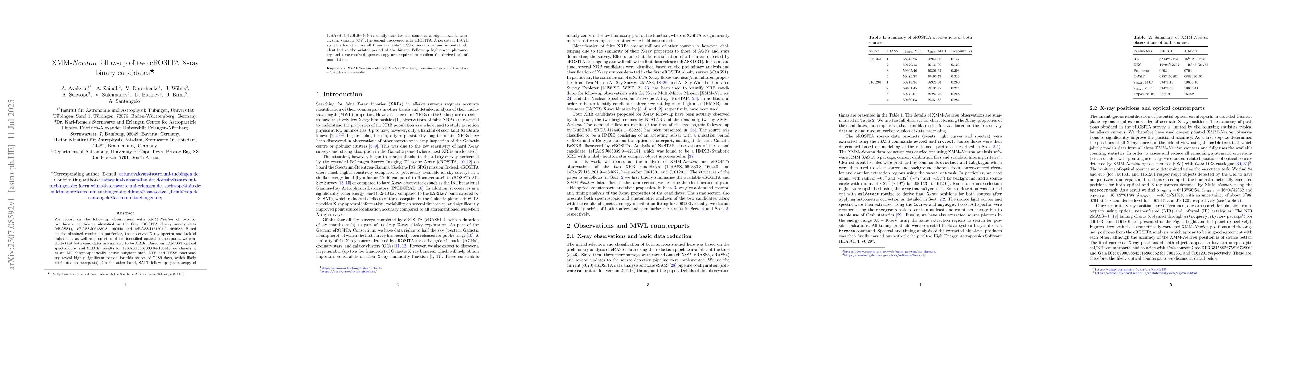 We report on the follow-up observations with XMM-Newton of two X-ray binary candidates identified in the first eROSITA all-sky survey data (eRASS1), 1eRASS J061330.8+160440 and 1eRASS J161201.9-464622. Based on the obtained results, in particular, the observed X-ray spectra and lack of pulsations, as well as properties of the identified optical counterparts, we conclude that both candidates are unlikely to be XRBs. Based on LAMOST optical spectroscopy and SED fit results for 1eRASS J061330.8+160440 we classify it as an M0 chromospherically active subgiant star. ZTF and TESS photometry reveal highly significant period for this object of 7.189 days, which likely attributed to starspot(s). On the other hand, SALT follow-up spectroscopy of 1eRASS J161201.9-464622 solidly classifies this source as a bright novalike cataclysmic variable (CV), the second discovered with eROSITA. A persistent 4.802 h signal is found across all three available TESS observations, and is tentatively identified as the orbital period of the binary. Follow-up high-speed photometry and time-resolved spectroscopy are required to confirm the derived orbital modulation.