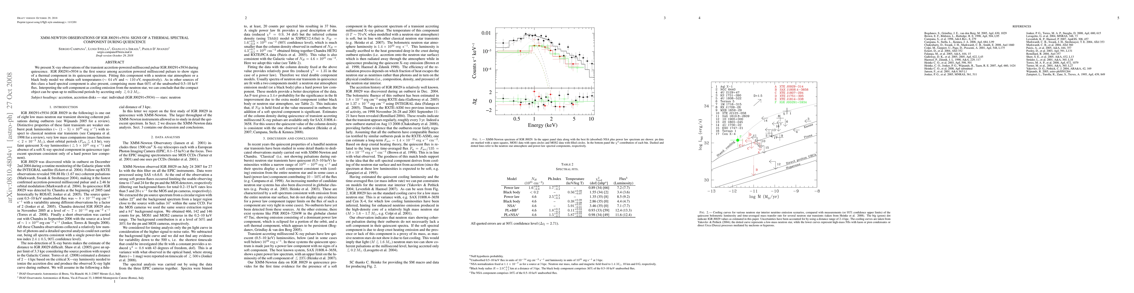 We present X-ray observations of the transient accretion-powered millisecond pulsar IGR J00291+5934 during quiescence. IGR J00291+5934 is the first source among accretion powered millisecond pulsars to show signs of a thermal component in its quiescent spectrum. Fitting this component with a neutron star atmosphere or a black body model we obtain soft temperatures (~64 eV and ~110 eV, respectively). As in other sources of this class a hard spectral component is also present, comprising more than 60% of the unabsorbed 0.5-10 keV flux. Interpreting the soft component as cooling emission from the neutron star, we can conclude that the compact object can be spun up to milliscond periods by accreting only <0.2 solar masses.