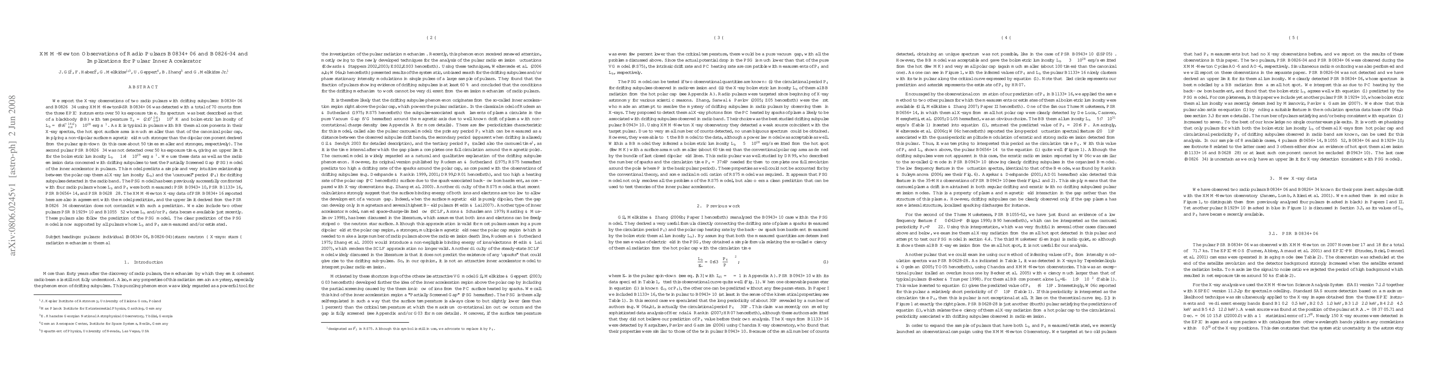 We report the X-ray observations of two radio pulsars with drifting subpulses: B0834 + 06 and B0826 - 34 using \xmm\. PSR B0834 + 06 was detected with a total of 70 counts from the three EPIC instruments over 50 ks exposure time. Its spectrum was best described as that of a blackbody (BB) with temperature $T_s=(2.0^{+2.0}_{-0.9}) \times 10^6$ K and bolometric luminosity of $L_b=(8.6^{+14.2}_{-4.4}) \times 10^{28}$ erg s$^{-1}$. As it is typical in pulsars with BB thermal components in their X-ray spectra, the hot spot surface area is much smaller than that of the canonical polar cap, implying a non-dipolar surface magnetic field much stronger than the dipolar component derived from the pulsar spin-down (in this case about 50 times smaller and stronger, respectively). The second pulsar PSR B0826 - 34 was not detected over 50 ks exposure time, giving an upper limit for the bolometric luminosity $L_b \leq 1.4 \times 10^{29}$ erg s$^{-1}$. We use these data as well as the radio emission data concerned with drifting subpulses to test the Partially Screened Gap (PSG) model of the inner accelerator in pulsars.