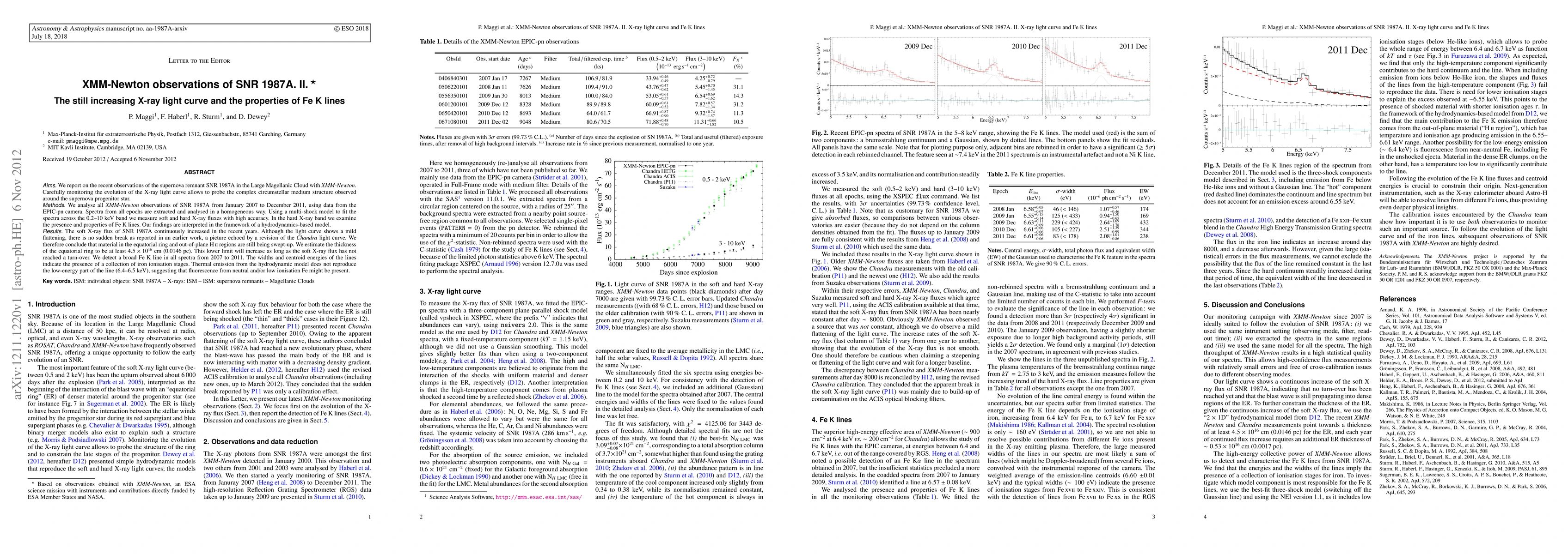 This study analyzes XMM-Newton observations of SNR 1987A from 2007 to 2011, revealing a continuously increasing soft X-ray flux without a sudden break, indicating ongoing material sweep-up. The Fe K lines detected suggest diverse iron ionisation stages, with fluorescence from neutral or low ionisation iron contributing to the low-energy part of the line.