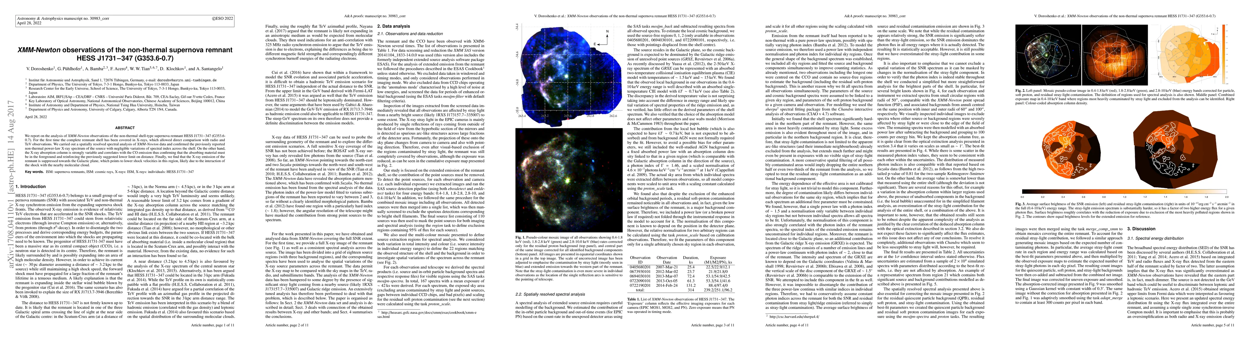 This paper reports on XMM-Newton observations of the non-thermal supernova remnant HESS J1731-347, revealing a consistent non-thermal X-ray spectrum across the shell with variable absorption correlating with CO emission, suggesting foreground material. The X-ray emission is lower near the Galactic plane, indicating slower shock velocities due to molecular cloud interaction.