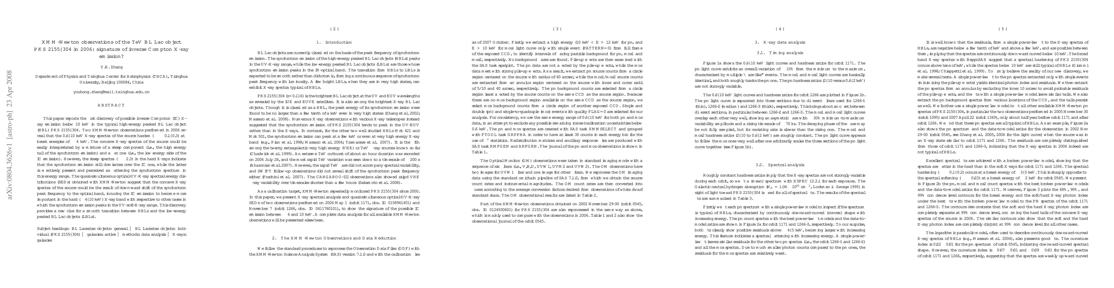 This paper reports the first discovery of possible inverse Compton X-ray emission in the BL Lac object PKS 2155--304, observed with XMM-Newton in 2006. The X-ray spectra show a hardening and a concave shape, suggesting a mixture of synchrotron and inverse Compton emissions, with the latter becoming more significant in the hard X-ray band.