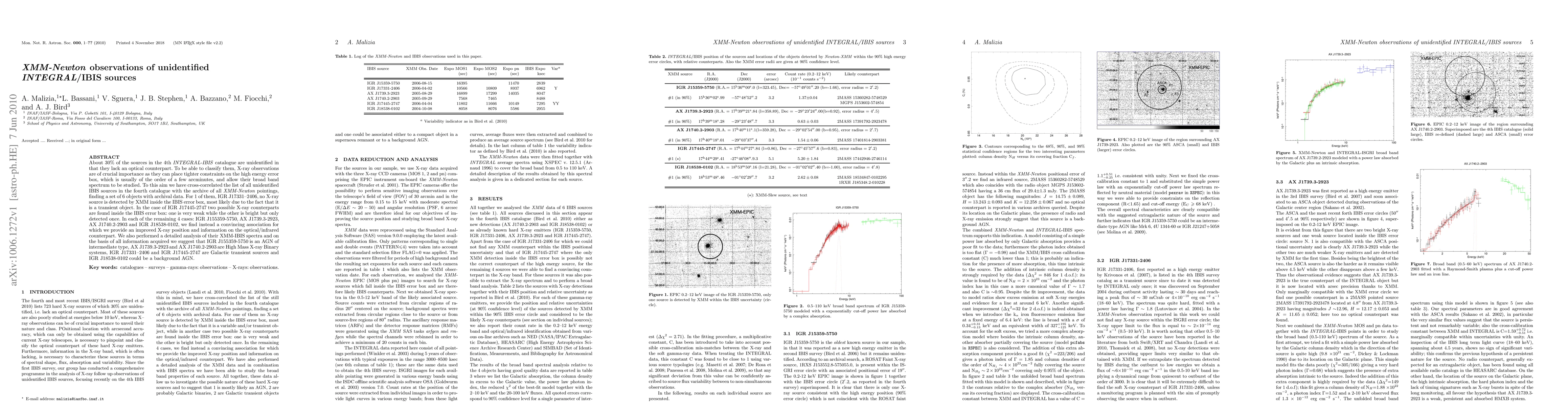 This paper investigates unidentified high-energy sources from the INTEGRAL/IBIS catalogue using XMM-Newton observations, identifying associations and classifying four objects as AGN, High Mass X-ray Binary systems, and Galactic transient sources, while one remains a candidate background AGN.