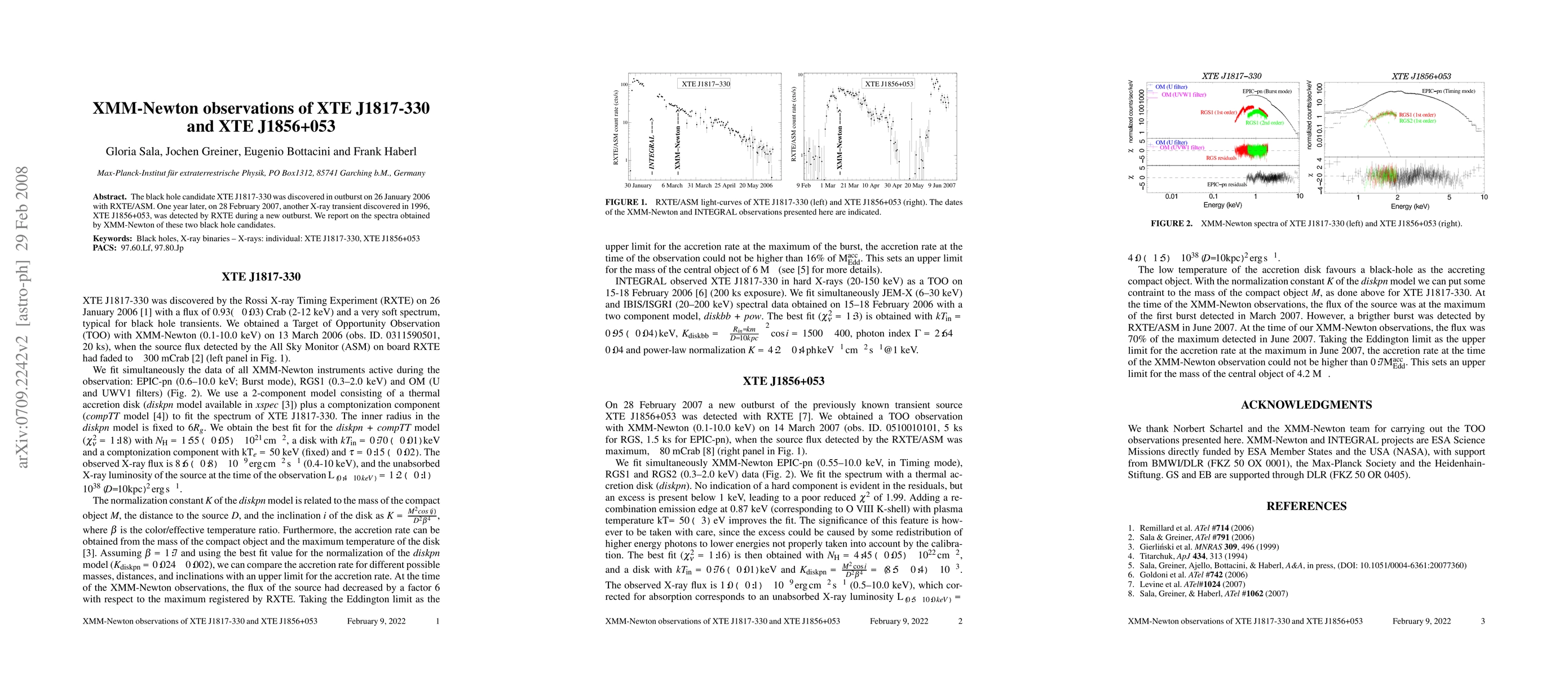 The XMM-Newton telescope observed two black hole candidates, XTE J1817-330 and XTE J1856+053, providing new insights into their spectra and behavior during outbursts.