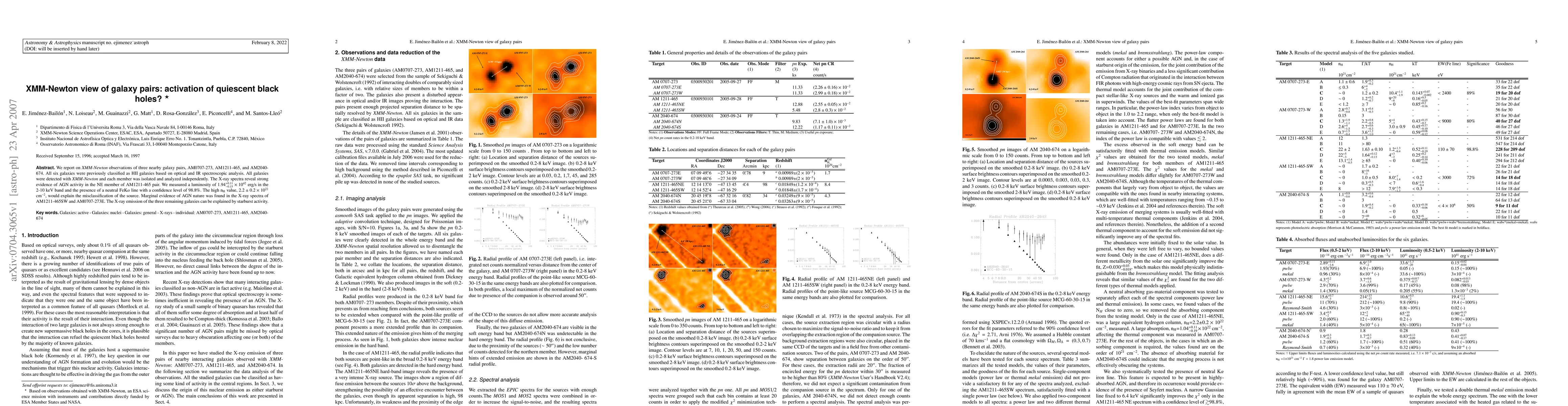 We report on XMM-Newton observations of three nearby galaxy pairs, AM0707-273, AM1211-465, and AM2040-674. All six galaxies were previously classified as HII galaxies based on optical and IR spectroscopic analysis. All galaxies were detected with XMM-Newton and each member was isolated and analyzed independently. The X-ray spectra reveal strong evidence of AGN activity in the NE member of AM1211-465 pair. We measured a luminosity of 1.94(+0.11/-0.15)x10^42 erg/s in the 2-10 keV band and the presence of a neutral FeK_alpha line with a confidence level of 98.8%. The high nH value, 2.2+/-0.2x10^22 cm^-2, would explain the misclassification of the source. Marginal evidence of AGN nature was found in the X-ray spectra of AM1211-465SW and AM0707-273E. The X-ray emission of the three remaining galaxies can be explained by starburst activity.