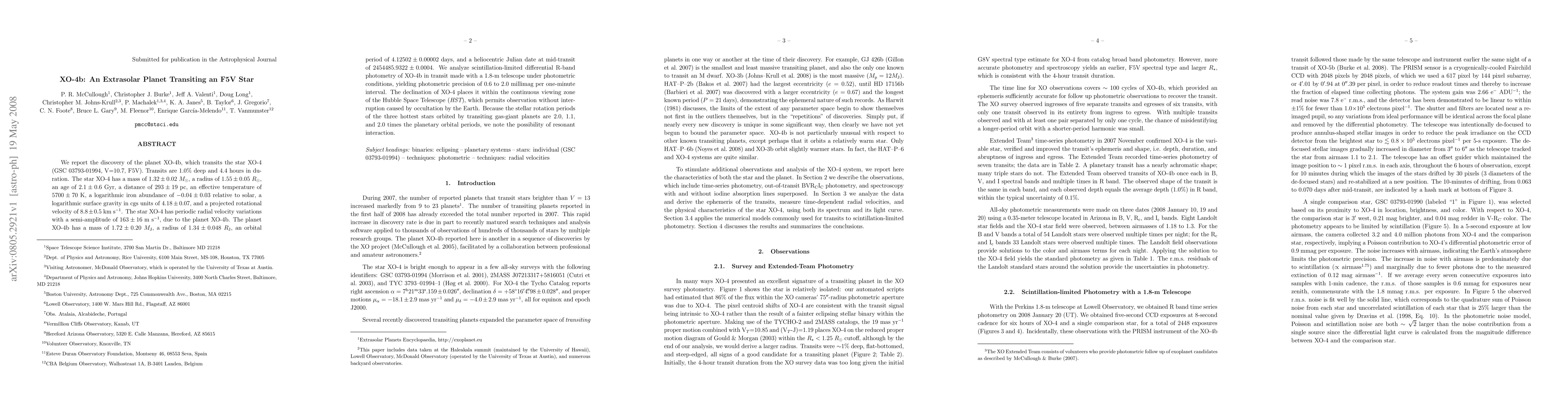 The research paper reports the discovery of the transiting exoplanet XO-4b orbiting the F5V star XO-4, with a mass of 1.72 M_Jup and a radius of 1.34 R_Jup. The star's rotation period suggests a possible resonant interaction with the planet's orbit.