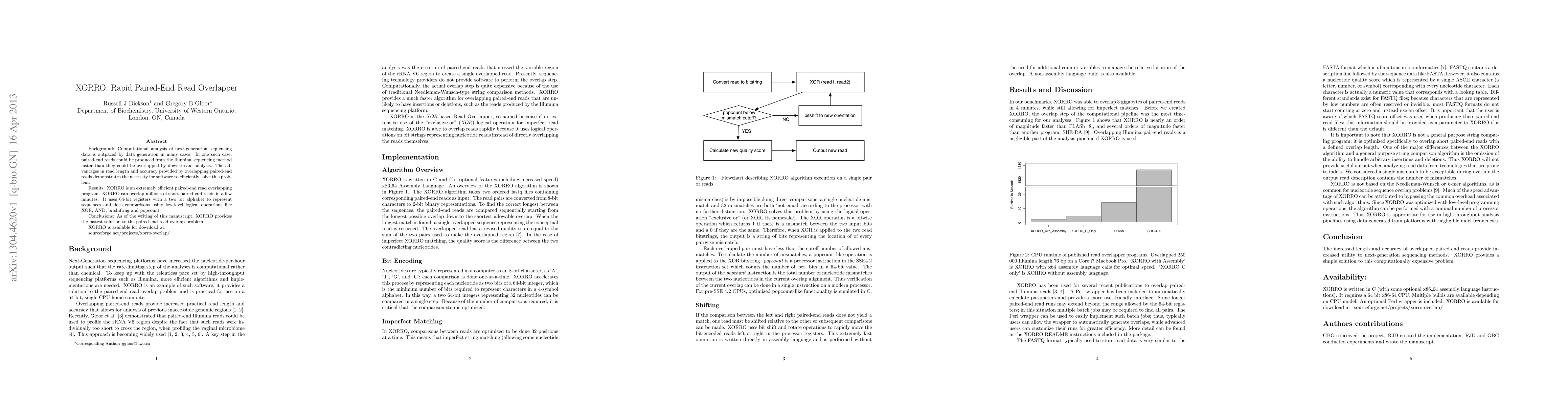 XORRO is a highly efficient software for rapidly overlapping paired-end reads from Illumina sequencing, utilizing advanced bitwise operations for speed. It offers the fastest solution for this task, capable of processing millions of reads in minutes.