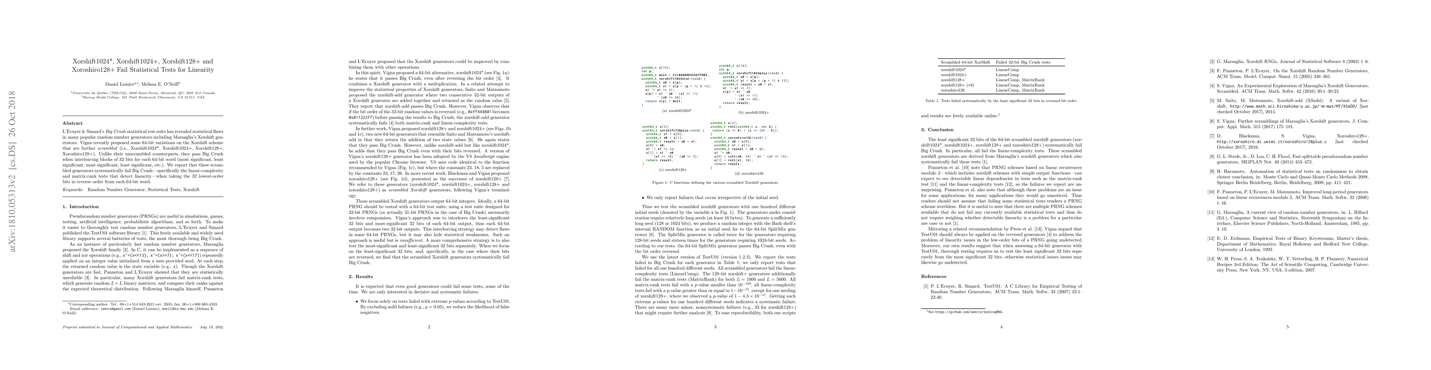This paper demonstrates that despite modifications to enhance randomness, L'Ecuyer & Simard's Big Crush tests reveal statistical flaws in Vigna's Xorshift1024*, Xorshift1024+, Xorshift128+, and Xoroshiro128+ generators, particularly failing the linear-complexity and matrix-rank tests when examining the 32 lowest-order bits in reverse order.