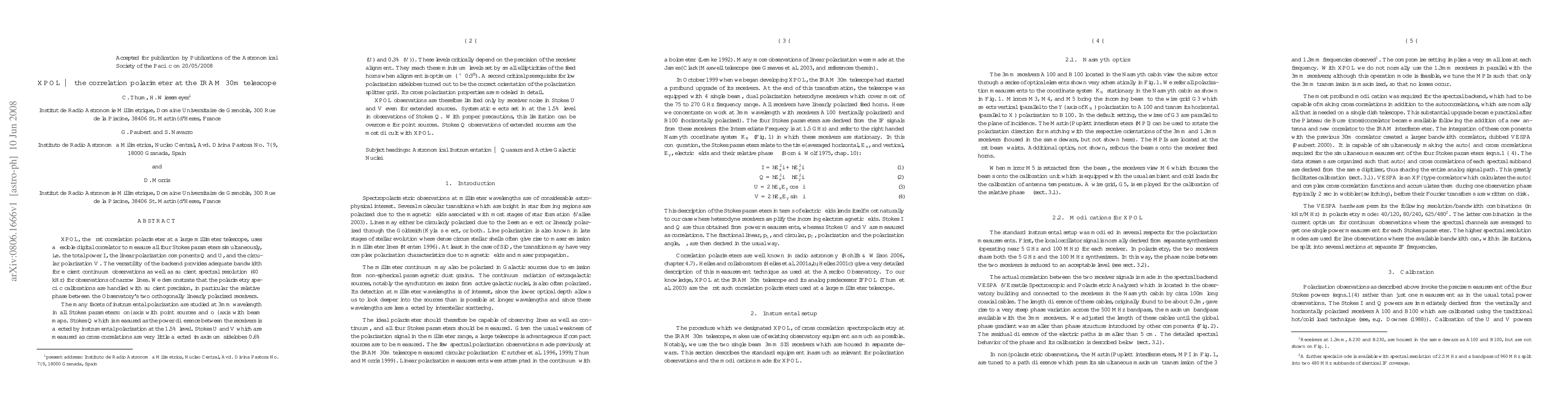 XPOL, a correlation polarimeter at the IRAM 30m telescope, measures all four Stokes parameters simultaneously with high precision. Its instrumental polarization is minimal for cross-correlations (Stokes U and V), but affects Stokes Q at the 1.5% level, with proper alignment and calibration.
