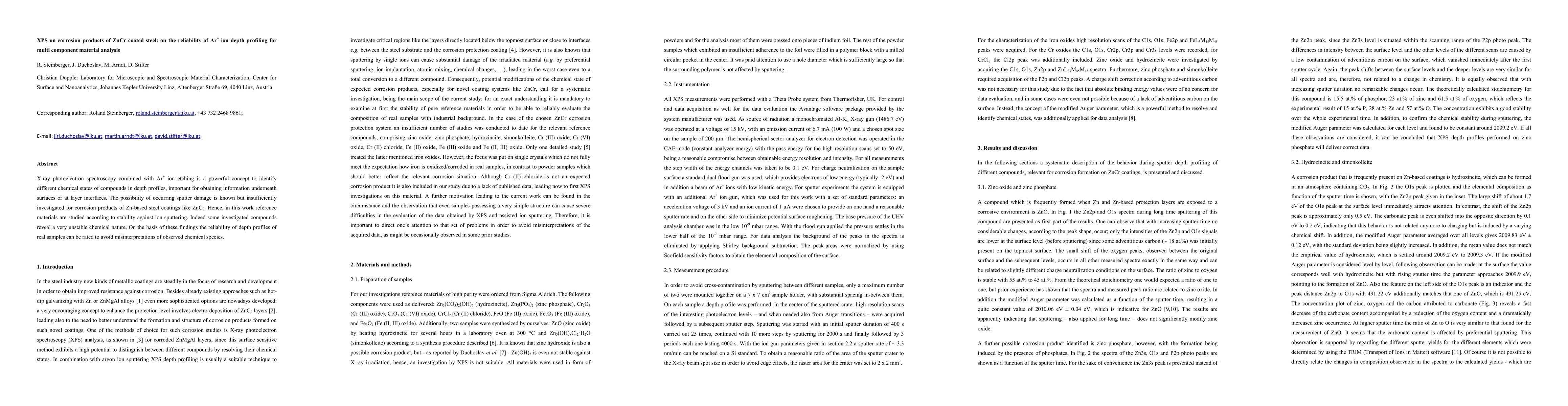 X-ray photoelectron spectroscopy combined with Ar+ ion etching is a powerful concept to identify different chemical states of compounds in depth profiles, important for obtaining information underneath surfaces or at layer interfaces. The possibility of occurring sputter damage is known but insufficiently investigated for corrosion products of Zn-based steel coatings like ZnCr. Hence, in this work reference materials are studied according to stability against ion sputtering. Indeed some investigated compounds reveal a very unstable chemical nature. On the basis of these findings the reliability of depth profiles of real samples can be rated to avoid misinterpretations of observed chemical species.