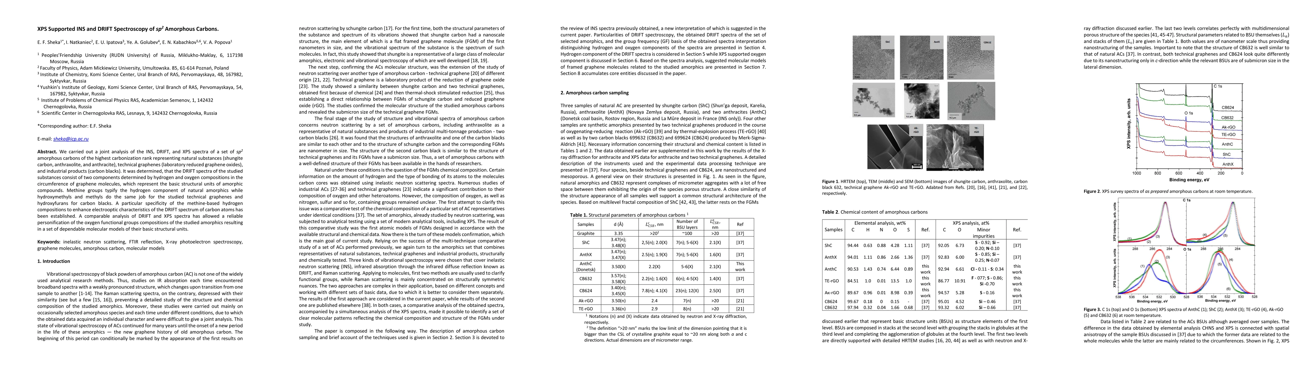 Researchers analyzed XPS, DRIFT, and INS spectra of sp2 amorphous carbons to identify molecular models of their basic structural units. They found specific patterns in hydrogen and oxygen compositions that can enhance electrooptic characteristics.