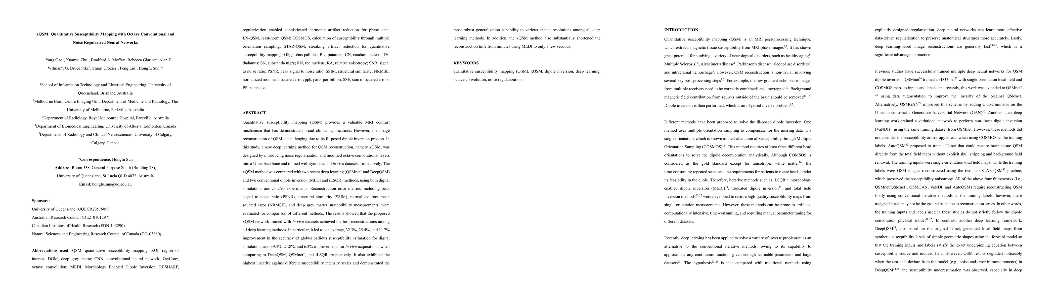 A new deep learning method called xQSM was developed to improve quantitative susceptibility mapping in MRI imaging, achieving suppressed artifacts and enhanced contrast, particularly in iron-rich brain regions, with significantly reduced reconstruction time.