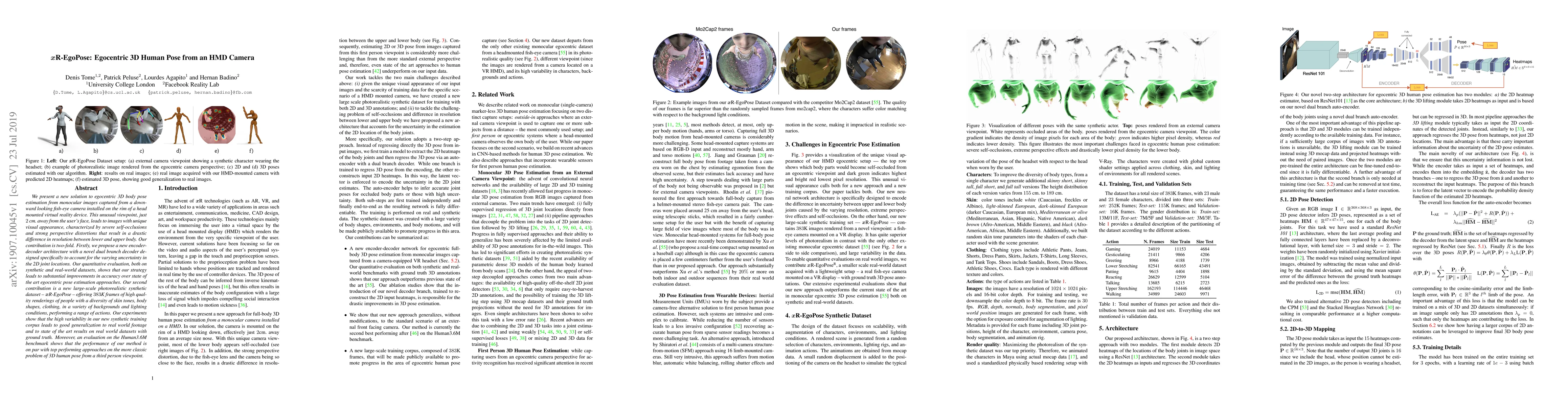 Researchers developed a new 3D human pose estimation method from an HMD camera's downward-facing fish-eye lens, achieving state-of-the-art results with a large synthetic dataset and improved accuracy over existing methods.