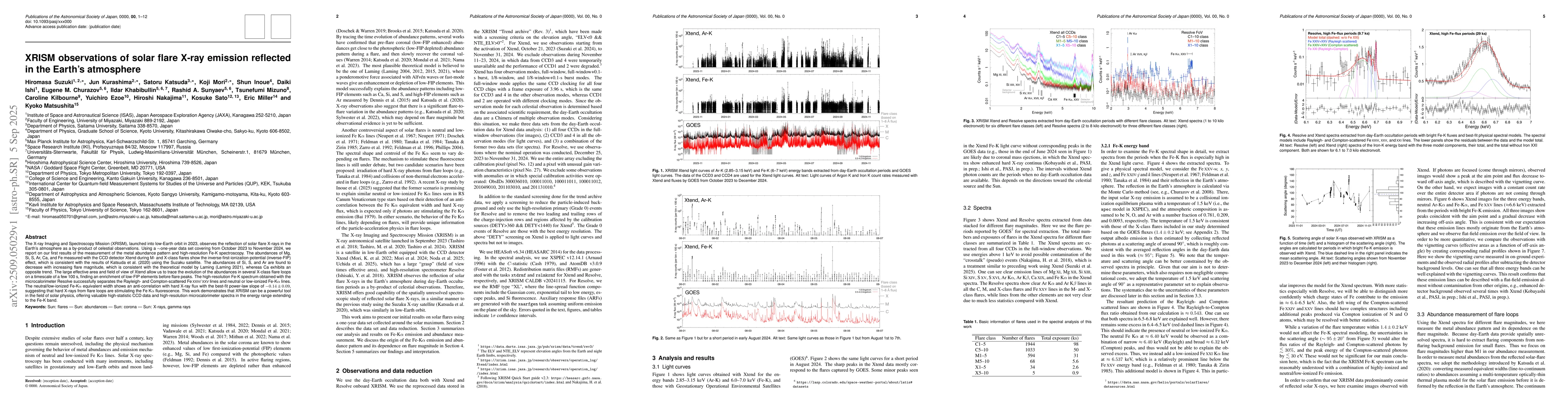 The X-ray Imaging and Spectroscopy Mission (XRISM), launched into low-Earth orbit in 2023, observes the reflection of solar flare X-rays in the Earth's atmosphere as a by-product of celestial observations. Using a $\sim$one-year data set covering from October 2023 to November 2024, we report on our first results of the measurement of the metal abundance pattern and high-resolution Fe-K spectroscopy. The abundances of Mg, Si, S, Ar, Ca, and Fe measured with the CCD detector Xtend during M- and X-class flares show the inverse-first-ionization-potential (inverse-FIP) effect, which is consistent with the results of Katsuda et al., ApJ, 2020 using the Suzaku satellite. The abundances of Si, S, and Ar are found to decrease with increasing flare magnitude, which is consistent with the theoretical model by Laming (Laming, ApJ, 2021), whereas Ca exhibits an opposite trend. The large effective area and field of view of Xtend allow us to trace the evolution of the abundances in several X-class flare loops on a timescale of a few 100 s, finding an enrichment of low-FIP elements before flare peaks. The high-resolution Fe-K spectrum obtained with the microcalorimeter Resolve successfully separates the Rayleigh- and Compton-scattered Fe XXIV/XXV lines and neutral or low-ionized Fe-K$\alpha$ lines. The neutral/low-ionized Fe-K$\alpha$ equivalent width shows an anti-correlation with hard X-ray flux with the best-fit power-law slope of $-0.14 \pm 0.09$, suggesting that hard X-rays from flare loops are stimulating the Fe K$\alpha$ fluorescence. This work demonstrates that XRISM can be a powerful tool in the field of solar physics, offering valuable high-statistic CCD data and high-resolution microcalorimeter spectra in the energy range extending to the Fe-K band.