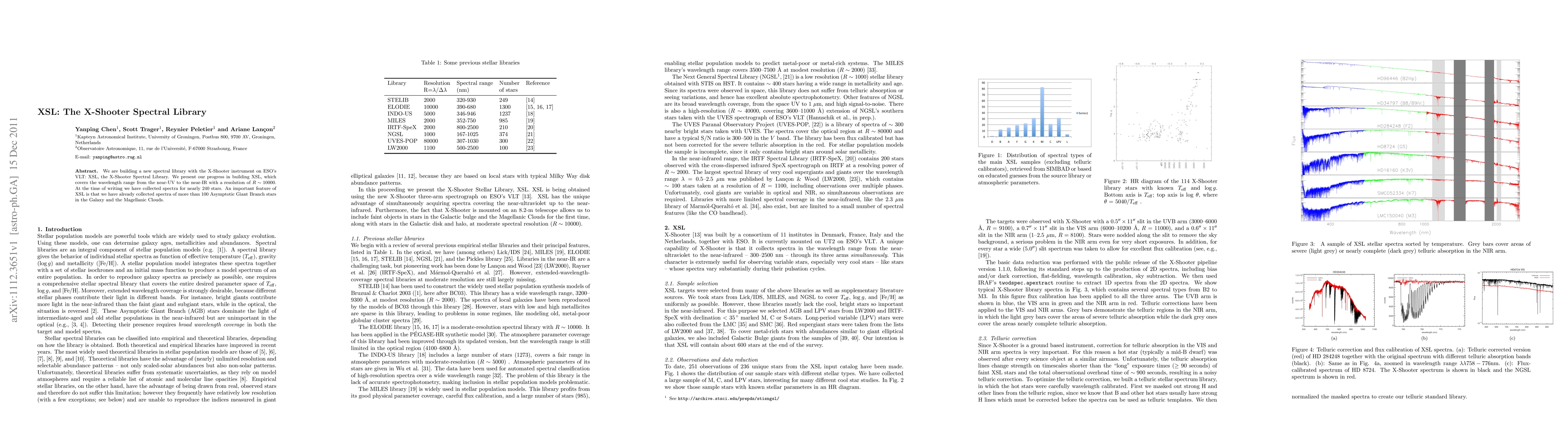 The X-Shooter Spectral Library (XSL) is being constructed using the X-Shooter instrument on ESO's VLT, covering the near-UV to near-IR range with a resolution of ~10,000. Currently, it includes spectra for nearly 240 stars, notably featuring over 100 Asymptotic Giant Branch stars from the Galaxy and the Magellanic Clouds.