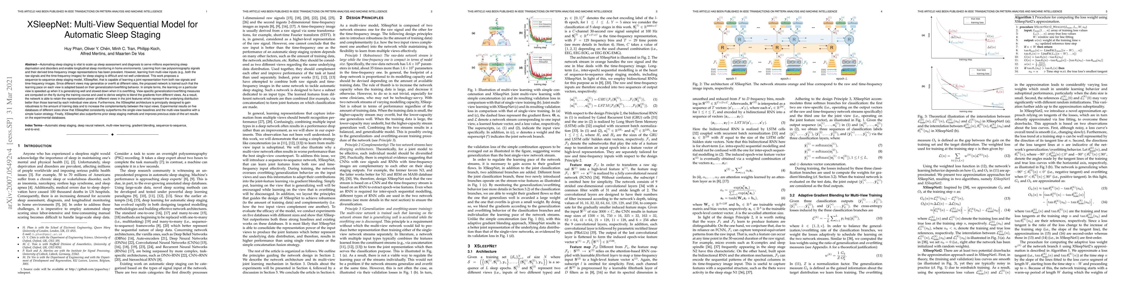 XSleepNet is a multi-view sequential model for automatic sleep staging, designed to learn joint representations from raw polysomnography signals and their time-frequency images. It adapts the learning pace for each input view based on their generalization/overfitting behavior, improving robustness and complementarity between views, and consistently outperforms single-view and simple multi-view baselines across various datasets.