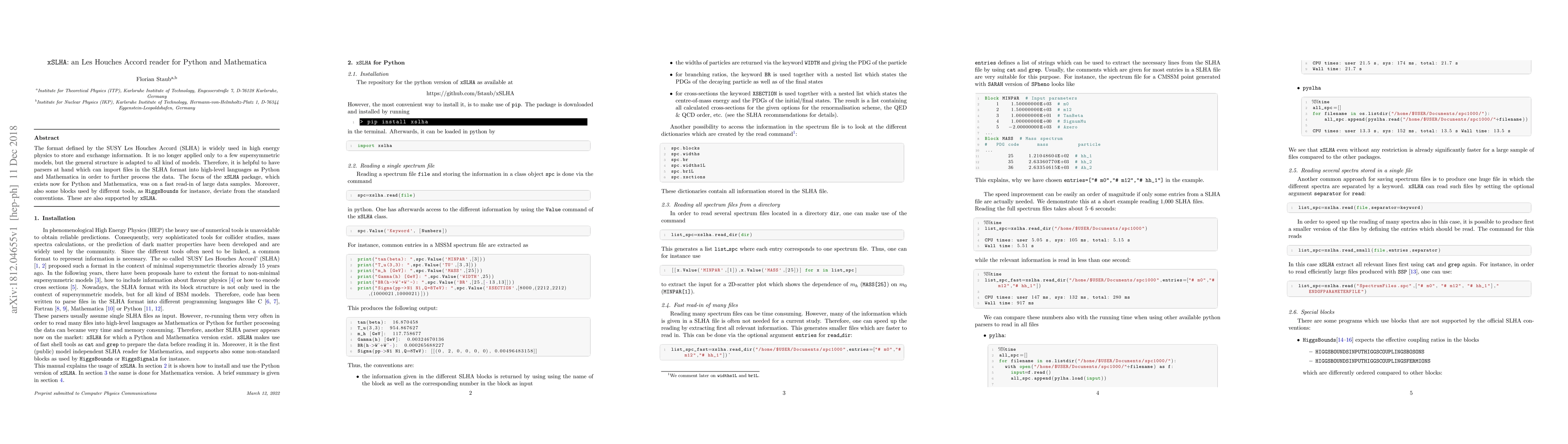 The SLHA parser xSLHA is a handy and flexible reader for data stored in SLHAspectrum files.