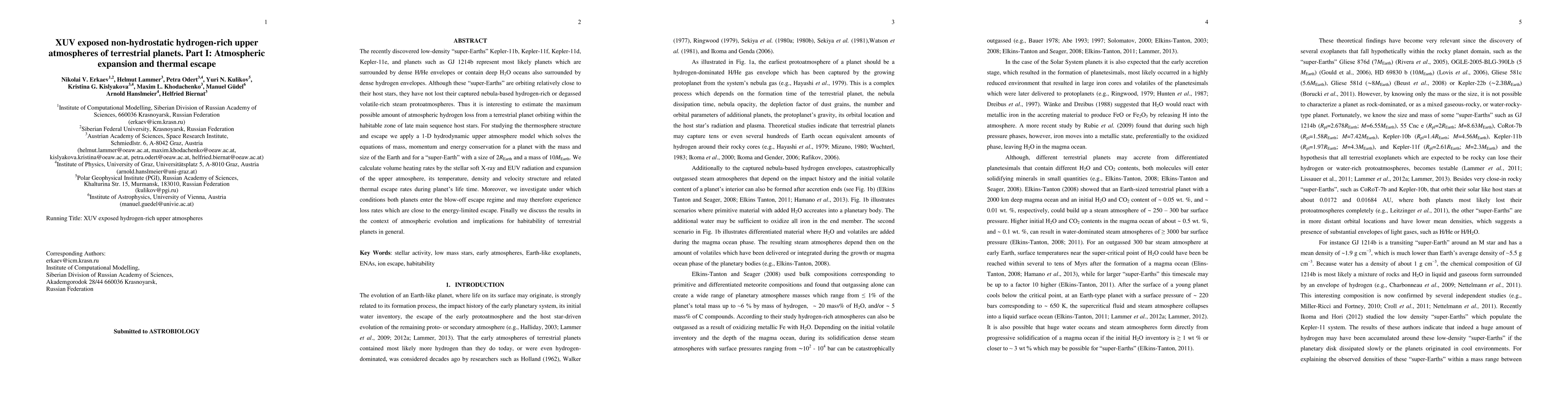 This paper investigates the atmospheric expansion and thermal escape of hydrogen-rich upper atmospheres in terrestrial planets like "super-Earths" exposed to XUV radiation from their host stars. Using a 1-D hydrodynamic model, it estimates the maximum hydrogen loss and conditions leading to energy-limited escape, discussing implications for the habitability of such planets.