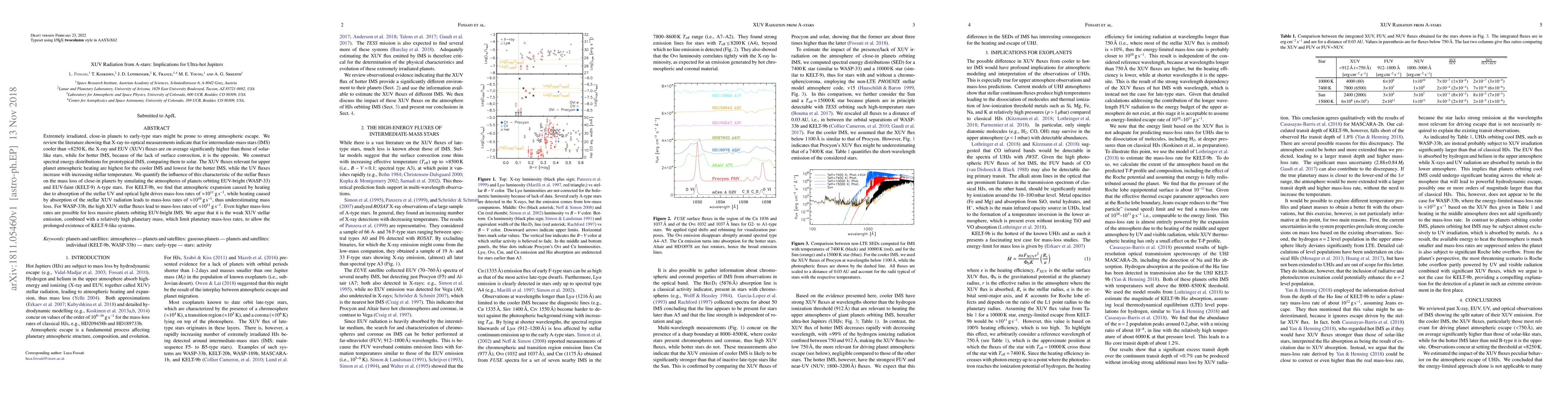 The study reviews existing literature on XUV radiation from intermediate-mass stars (IMS) and constructs spectral energy distributions for prototypical IMS, comparing them to solar values. It also simulates the atmospheres of planets orbiting EUV-bright and EUV-faint A-type stars to quantify the influence of stellar XUV fluxes on mass loss.