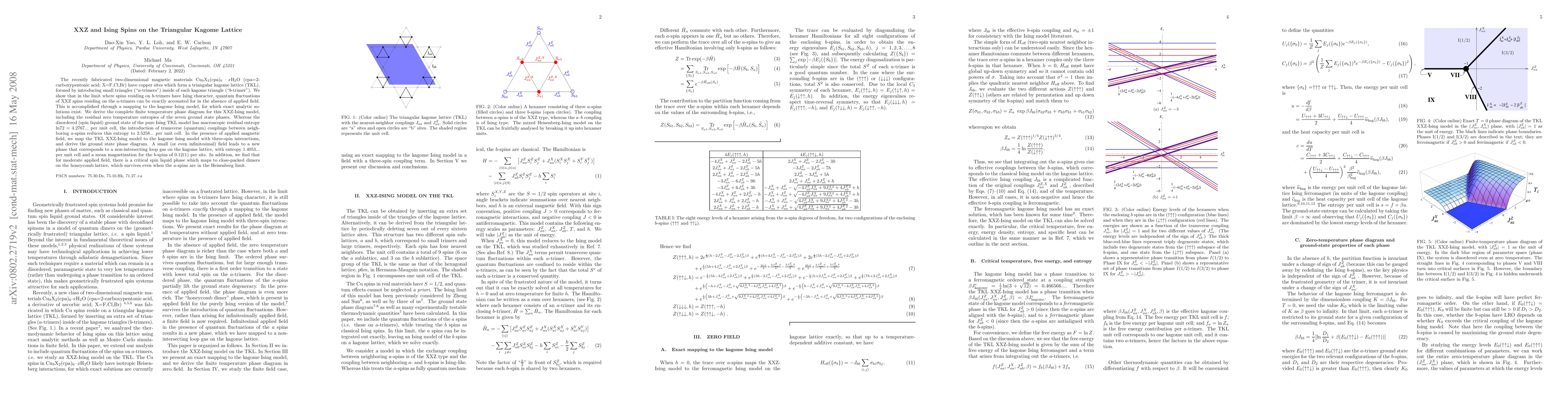 This paper explores the triangular kagome lattice formed by copper sites in magnetic materials, demonstrating that quantum fluctuations of XXZ spins on "a-trimers" can be exactly mapped to the Ising model on "b-trimers." The study derives the complete finite temperature phase diagram and reveals a reduction in residual entropy from the pure Ising model due to the introduction of quantum couplings.