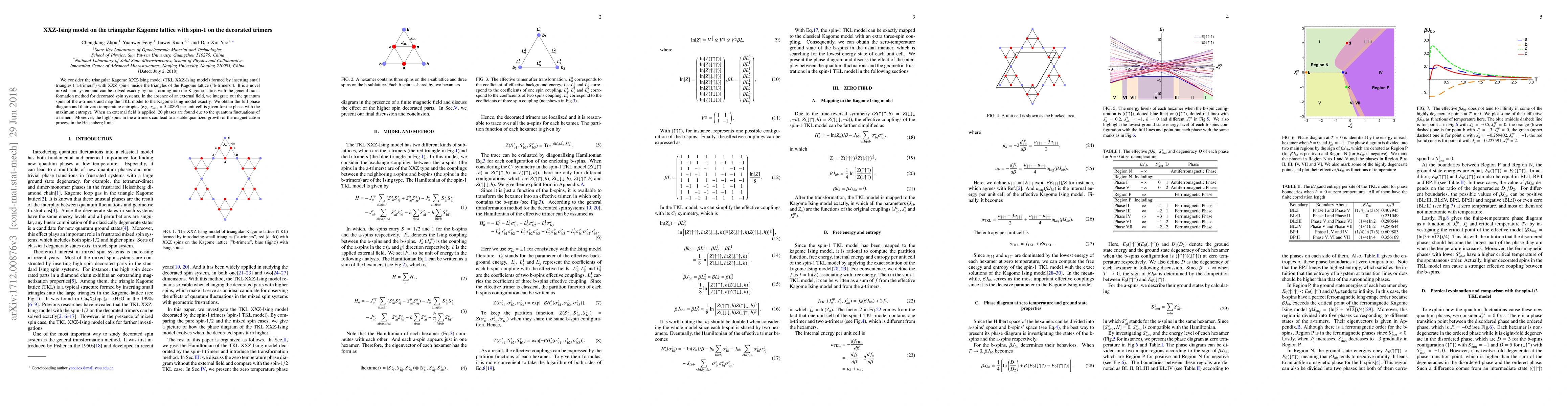 This paper studies the triangular kagome lattice XXZ-Ising model with spin-1 on decorated trimers, solving it exactly and mapping it to the kagome Ising model. The full phase diagram and zero-temperature entropies are obtained, revealing a stable quantized growth of magnetization under external fields.