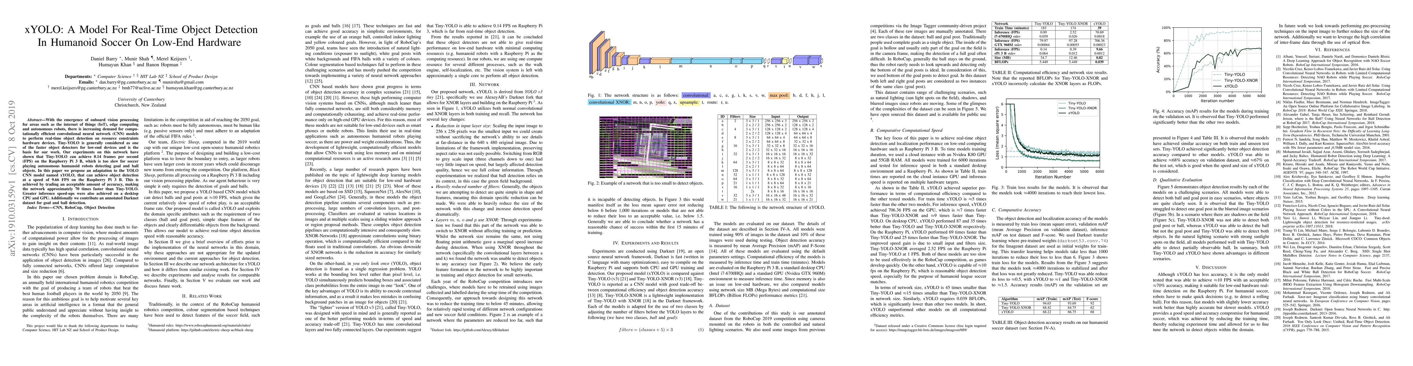 With the emergence of onboard vision processing for areas such as the internet of things (IoT), edge computing and autonomous robots, there is increasing demand for computationally efficient convolutional neural network (CNN) models to perform real-time object detection on resource constraints hardware devices. Tiny-YOLO is generally considered as one of the faster object detectors for low-end devices and is the basis for our work. Our experiments on this network have shown that Tiny-YOLO can achieve 0.14 frames per second(FPS) on the Raspberry Pi 3 B, which is too slow for soccer playing autonomous humanoid robots detecting goal and ball objects. In this paper we propose an adaptation to the YOLO CNN model named xYOLO, that can achieve object detection at a speed of 9.66 FPS on the Raspberry Pi 3 B. This is achieved by trading an acceptable amount of accuracy, making the network approximately 70 times faster than Tiny-YOLO. Greater inference speed-ups were also achieved on a desktop CPU and GPU. Additionally we contribute an annotated Darknet dataset for goal and ball detection.