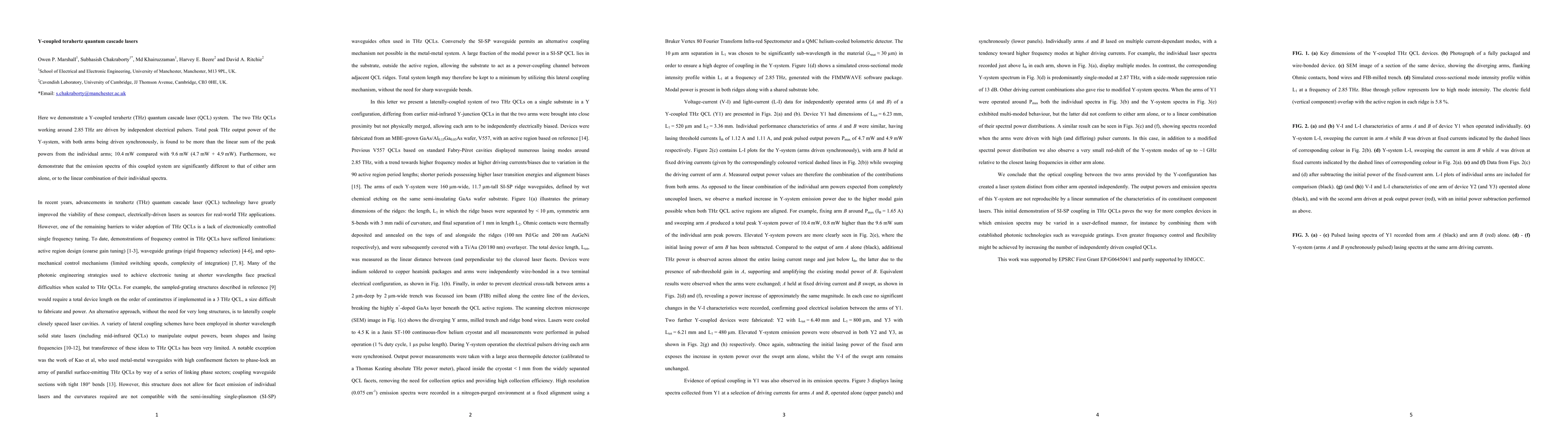 The research presents a Y-coupled terahertz quantum cascade laser system, where two 2.85 THz QCLs driven by independent pulsers achieve a combined output power (10.4 mW) exceeding the sum of individual arm powers. The coupled system's emission spectra differ significantly from those of individual arms or their linear combination, indicating enhanced performance and novel spectral characteristics.