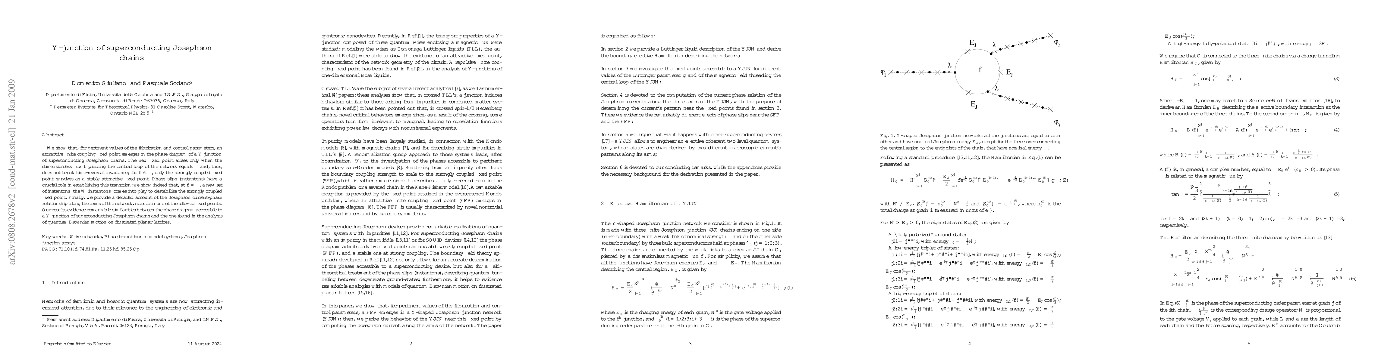 This paper explores the phase diagram of a Y-junction of superconducting Josephson chains, revealing an attractive finite coupling fixed point at a specific flux value that preserves time-reversal invariance. Phase slips, specifically W-instantons, destabilize the strongly coupled fixed point at non-specific flux values, leading to unique current-phase relationships.