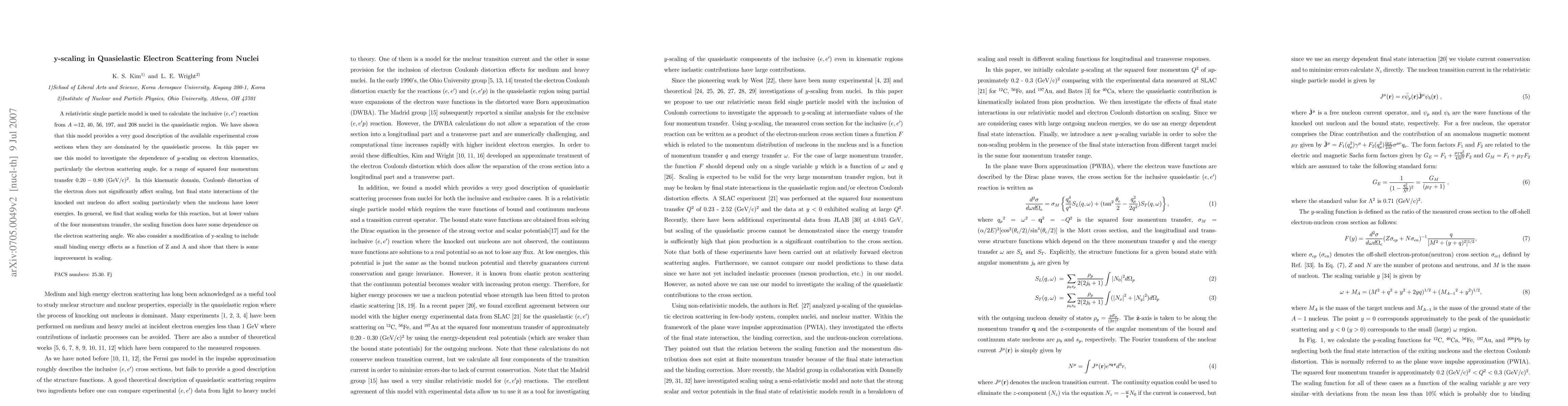 This paper uses a relativistic single particle model to analyze quasielastic electron scattering from various nuclei, demonstrating good agreement with experimental data. It investigates $y$-scaling dependence on electron kinematics, finding that while scaling generally holds, it is slightly affected by the electron scattering angle and final state interactions, especially at lower momentum transfers.