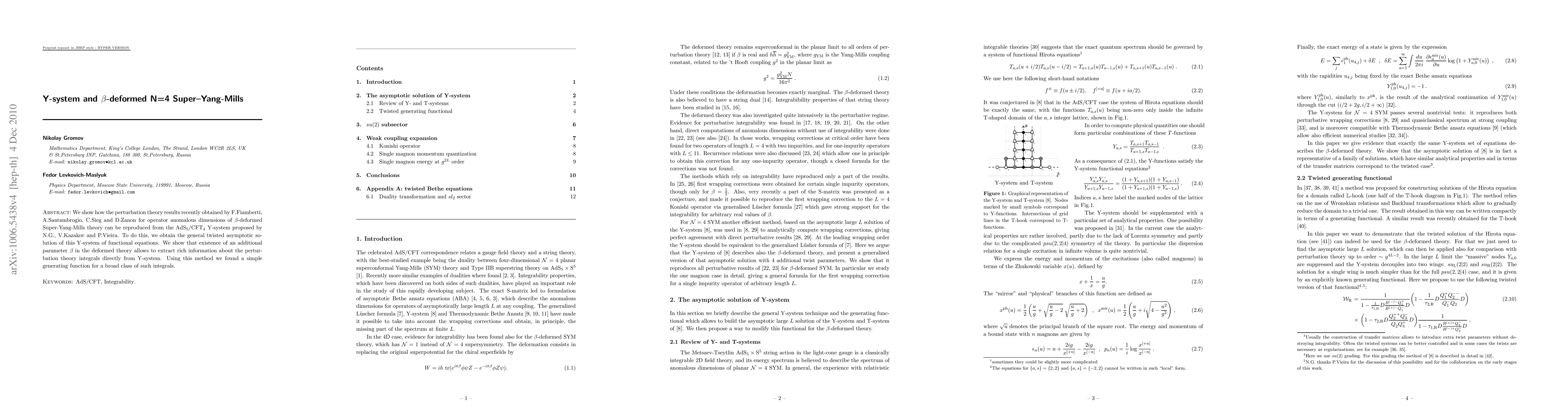 This paper demonstrates how results on operator anomalous dimensions from beta-deformed N=4 Super-Yang-Mills theory can be derived from the AdS5/CFT4 Y-system. It finds a general twisted asymptotic solution of the Y-system, revealing how the additional parameter beta enables the extraction of detailed information about perturbation theory integrals and introduces a generating function for a wide range of these integrals.