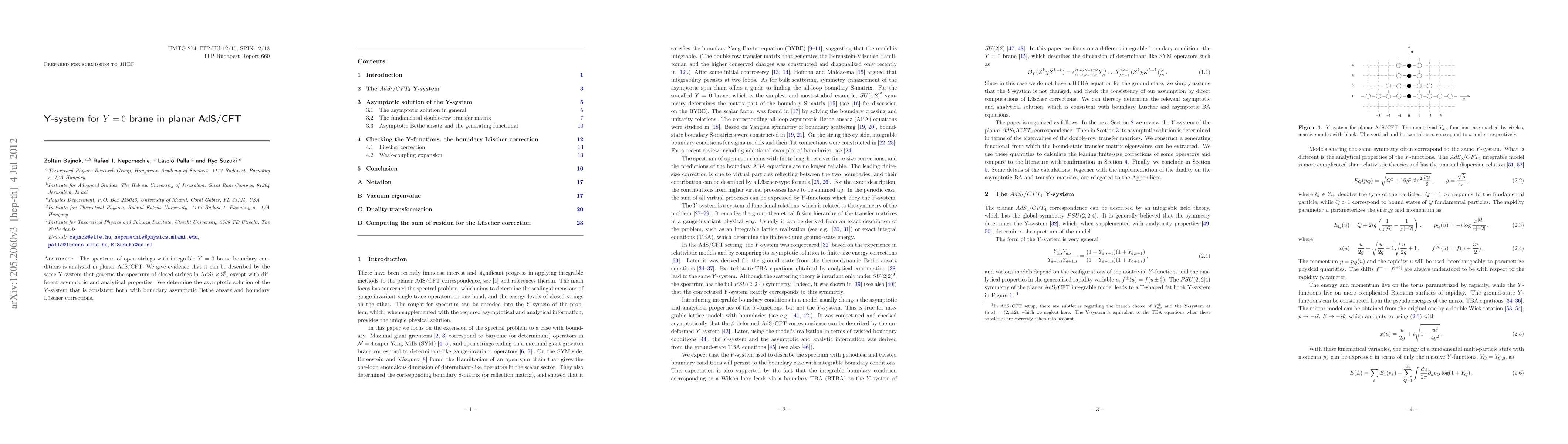 This paper analyzes the spectrum of open strings with Y=0 brane boundary conditions in planar AdS/CFT, showing it can be described by the Y-system used for closed strings in AdS_5xS^5, albeit with distinct properties. The authors determine the asymptotic solution of the Y-system that aligns with both boundary asymptotic Bethe ansatz and boundary Luscher corrections.
