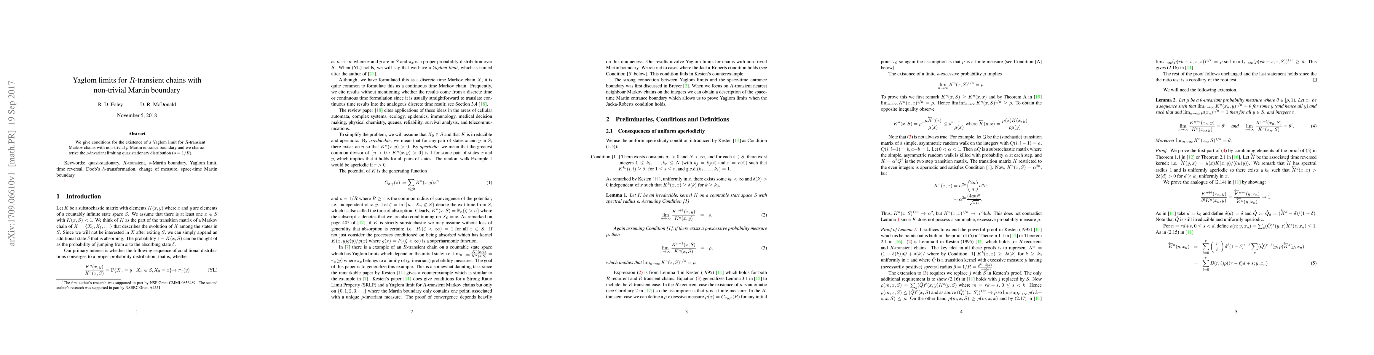 Summary: This paper establishes conditions for the existence of a Yaglom limit in R-transient Markov chains with a non-trivial Martin boundary and characterizes the associated limiting quasistationary distribution.