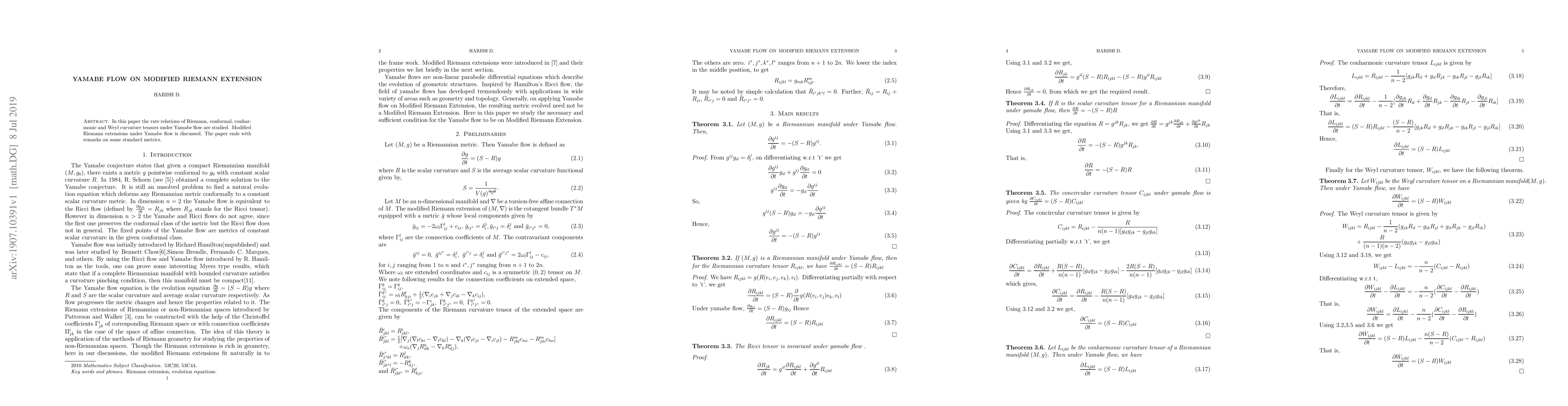 This paper investigates the rate relations of various curvature tensors—Riemann, conformal, conharmonic, and Weyl—under the Yamabe flow, focusing on modified Riemann extensions. It concludes with observations on standard metrics in the context of these transformations.