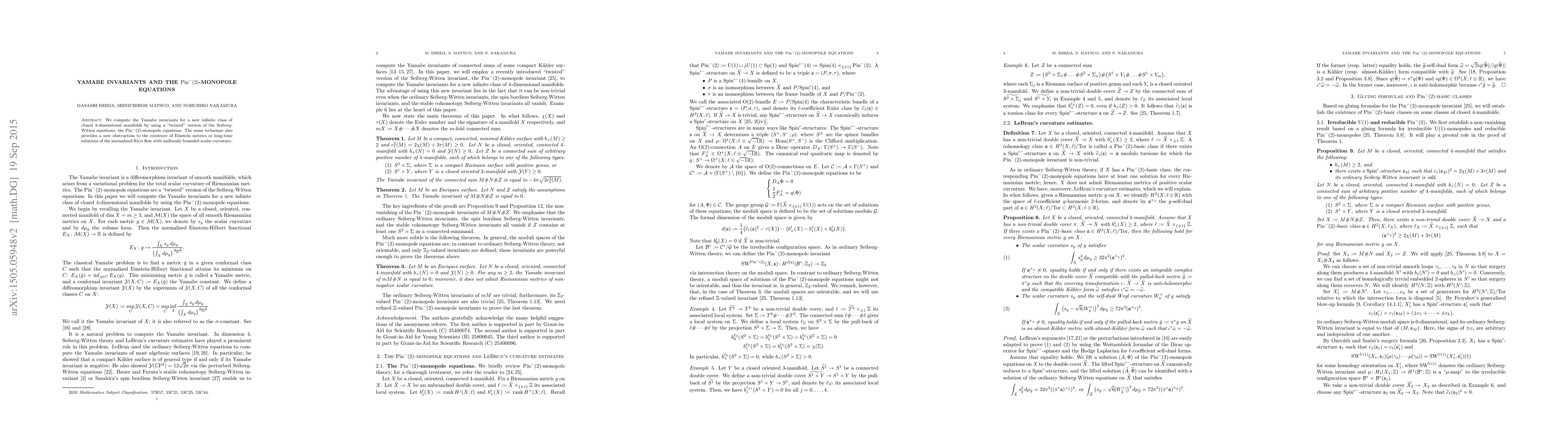 This paper calculates Yamabe invariants for a new class of $4$-dimensional manifolds using $\mathrm{Pin}^-(2)$-monopole equations derived from Seiberg-Witten theory, and identifies a new obstruction to Einstein metrics or Ricci flow solutions with bounded scalar curvature.