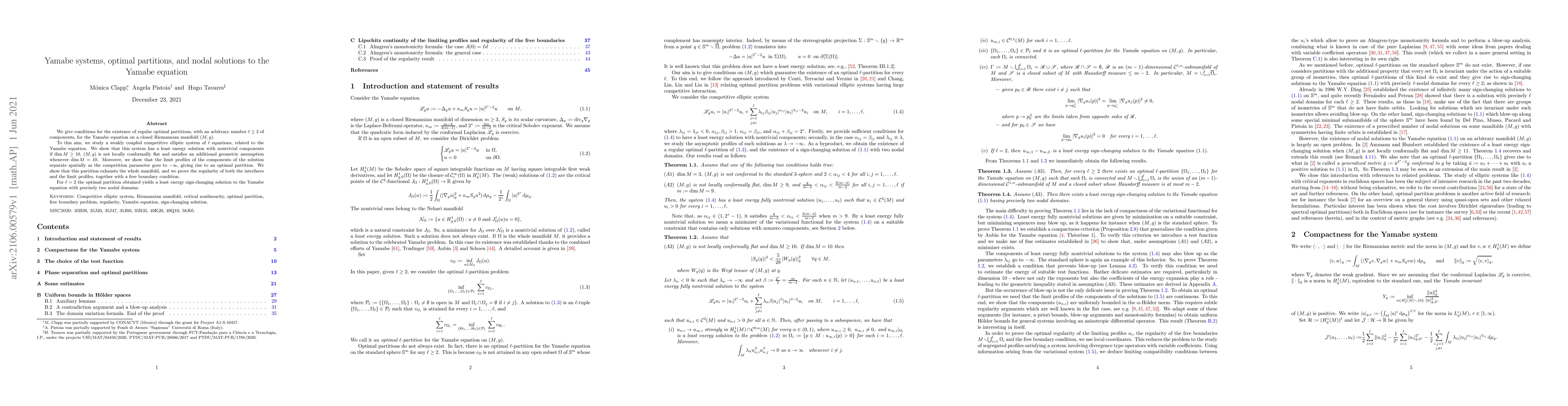 We give conditions for the existence of regular optimal partitions, with an arbitrary number $\ell\geq 2$ of components, for the Yamabe equation on a closed Riemannian manifold $(M,g)$. To this aim, we study a weakly coupled competitive elliptic system of $\ell$ equations, related to the Yamabe equation. We show that this system has a least energy solution with nontrivial components if $\dim M\geq 10$, $(M,g)$ is not locally conformally flat and satisfies an additional geometric assumption whenever $\dim M=10$. Moreover, we show that the limit profiles of the components of the solution separate spatially as the competition parameter goes to $-\infty$, giving rise to an optimal partition. We show that this partition exhausts the whole manifold, and we prove the regularity of both the interfaces and the limit profiles, together with a free boundary condition. For $\ell=2$ the optimal partition obtained yields a least energy sign-changing solution to the Yamabe equation with precisely two nodal domains.