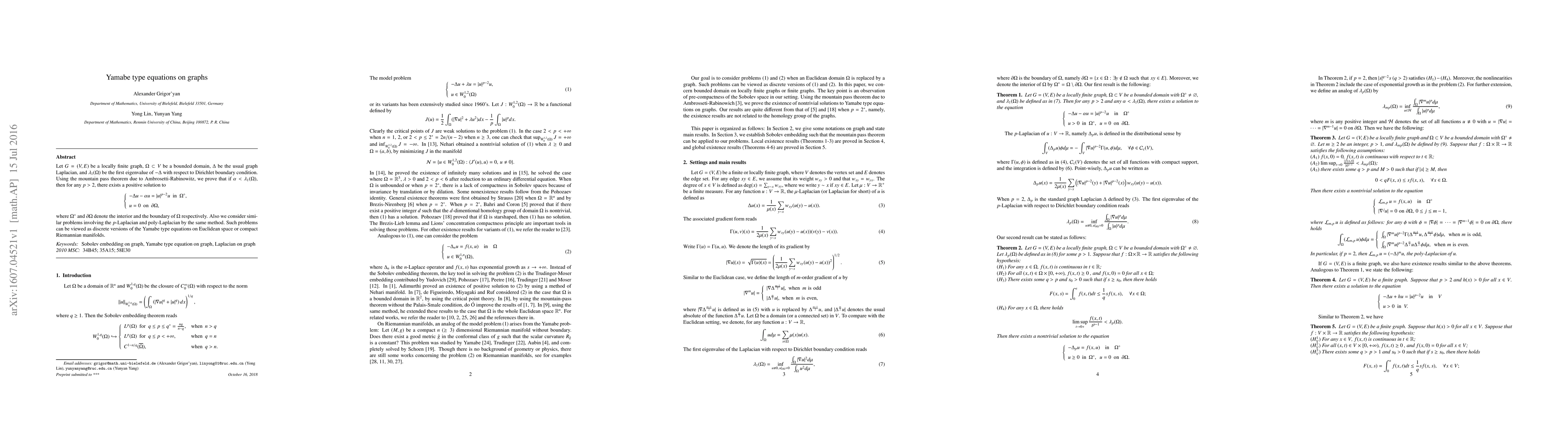 Let $G=(V,E)$ be a locally finite graph, $\Omega\subset V$ be a bounded domain, $\Delta$ be the usual graph Laplacian, and $\lambda_1(\Omega)$ be the first eigenvalue of $-\Delta$ with respect to Dirichlet boundary condition. Using the mountain pass theorem due to Ambrosetti-Rabinowitz, we prove that if $\alpha<\lambda_1(\Omega)$, then for any $p>2$, there exists a positive solution to $-\Delta u-\alpha u=|u|^{p-2}u$ in $\Omega^\circ$, $u=0$ on $\partial\Omega$, where $\Omega^\circ$ and $\partial\Omega$ denote the interior and the boundary of $\Omega$ respectively. Also we consider similar problems involving the $p$-Laplacian and poly-Laplacian by the same method. Such problems can be viewed as discrete versions of the Yamabe type equations on Euclidean space or compact Riemannian manifolds.