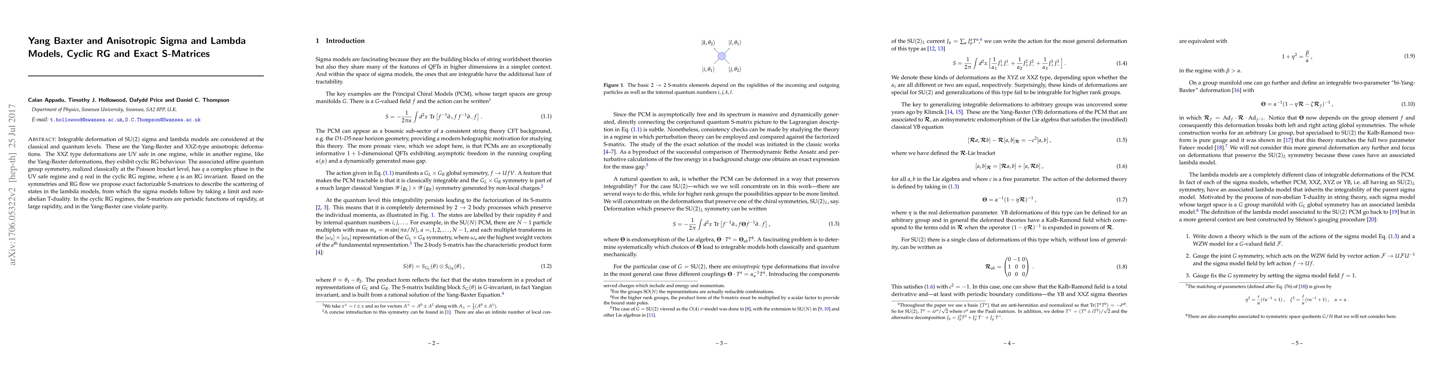 This paper studies integrable deformations of SU(2) sigma and lambda models, including Yang-Baxter and XXZ-type anisotropic deformations. It proposes exact factorizable S-matrices based on symmetries and RG flow to describe scattering in lambda models, which also apply to sigma models via limits and non-abelian T-duality.