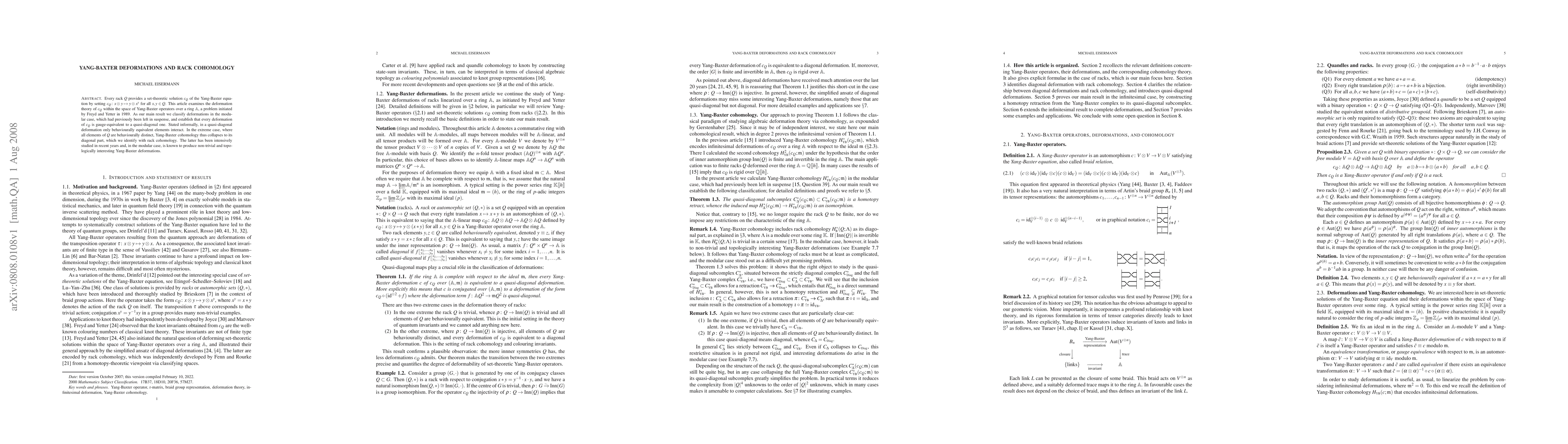 Every rack $Q$ provides a set-theoretic solution $c_Q$ of the Yang-Baxter equation. This article examines the deformation theory of $c_Q$ within the space of Yang-Baxter operators over a ring $\A$, a problem initiated by Freyd and Yetter in 1989. As our main result we classify deformations in the modular case, which had previously been left in suspense, and establish that every deformation of $c_Q$ is gauge-equivalent to a quasi-diagonal one. Stated informally, in a quasi-diagonal deformation only behaviourally equivalent elements interact. In the extreme case, where all elements of $Q$ are behaviourally distinct, Yang-Baxter cohomology thus collapses to its diagonal part, which we identify with rack cohomology. The latter has been intensively studied in recent years and, in the modular case, is known to produce non-trivial and topologically interesting Yang-Baxter deformations.