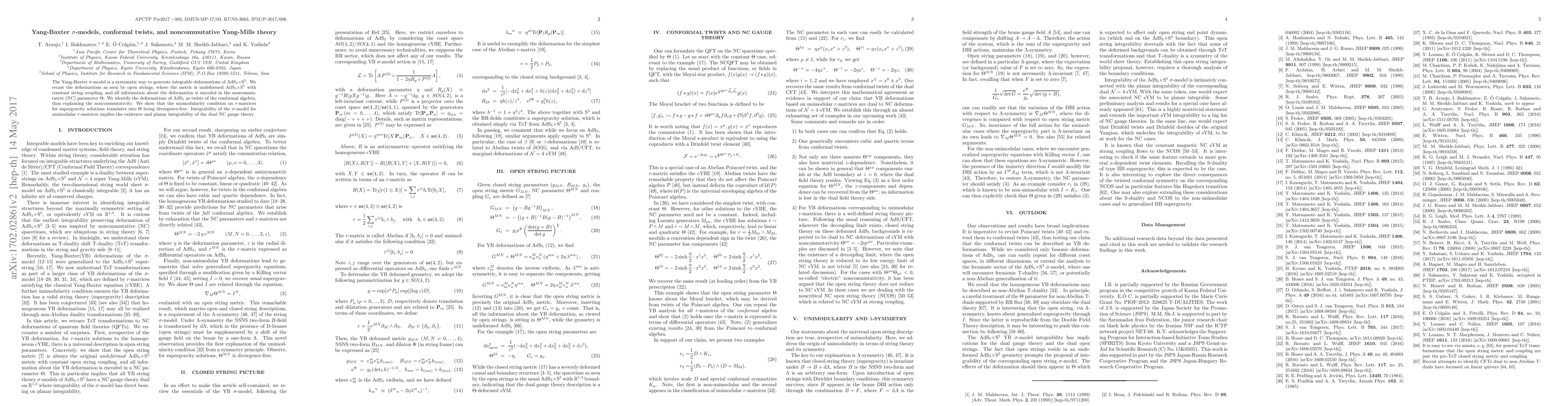 The Yang-Baxter $\sigma$-model generates integrable deformations of AdS$_5\times$S$^5$, interpreted through open strings with a constant string coupling and a noncommutative parameter $\Theta$. These deformations correspond to twists in the conformal algebra, explaining the noncommutativity and ensuring the divergence-free nature of $\Theta$.