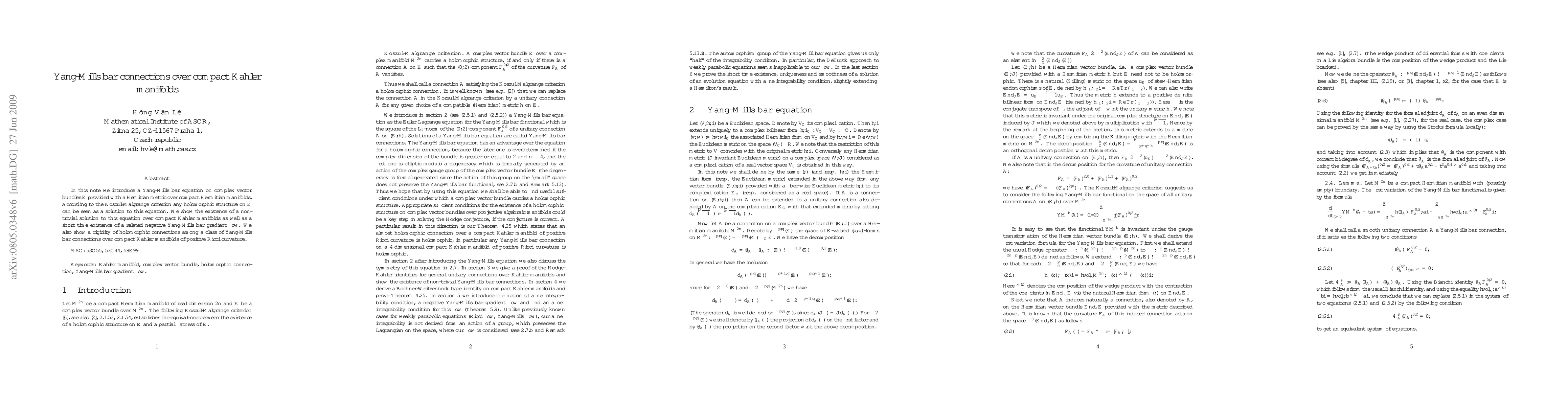 In this note we introduce a Yang-Mills bar equation on complex vector bundles over compact Hermitian manifolds as the Euler-Lagrange equation for a Yang-Mills bar functional. We show the existence of a non-trivial solution of this equation over compact K\"ahler manifolds as well as a short time existence of the negative Yang-Mills bar gradient flow. We also show a rigidity of holomorphic connections among a class of Yang-Mills bar connections over compact K\"ahler manifolds of positive Ricci curvature.