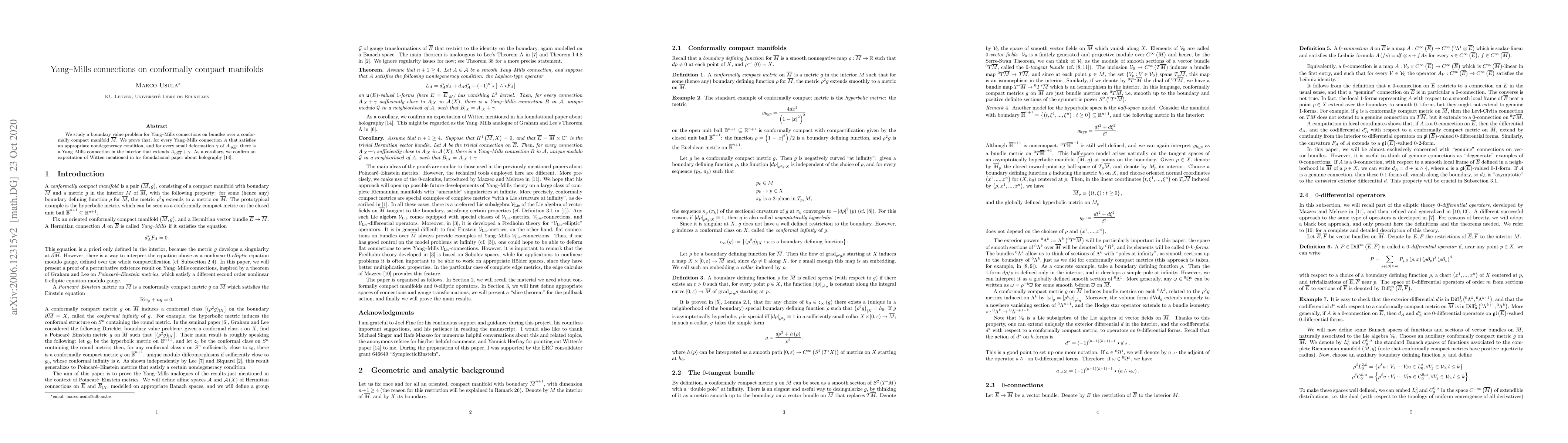 This paper investigates the moduli space of Yang-Mills connections on bundles over conformally compact manifolds, proving that small deformations of boundary connections extend to the interior, confirming a conjecture by Witten related to holography.