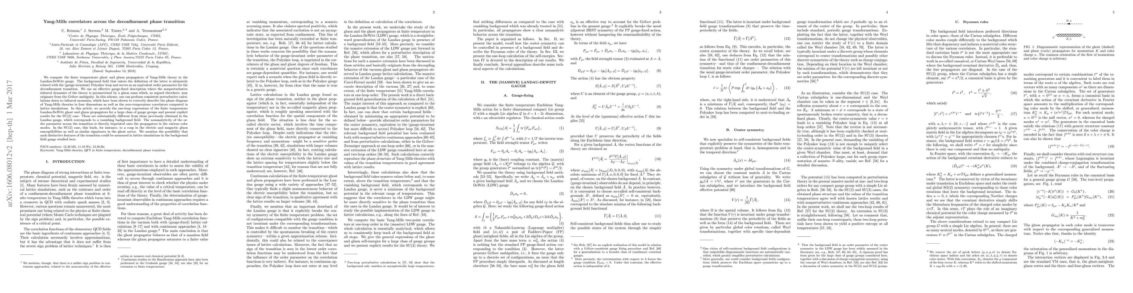 This paper computes the finite temperature ghost and gluon propagators in Yang-Mills theory using the Landau-DeWitt gauge, revealing significant differences from those in the Landau gauge. The study highlights nonanalytic behavior across the deconfinement phase transition, evidenced by cusps in gluon susceptibilities and signatures in the ghost sector, potentially observable in lattice simulations.