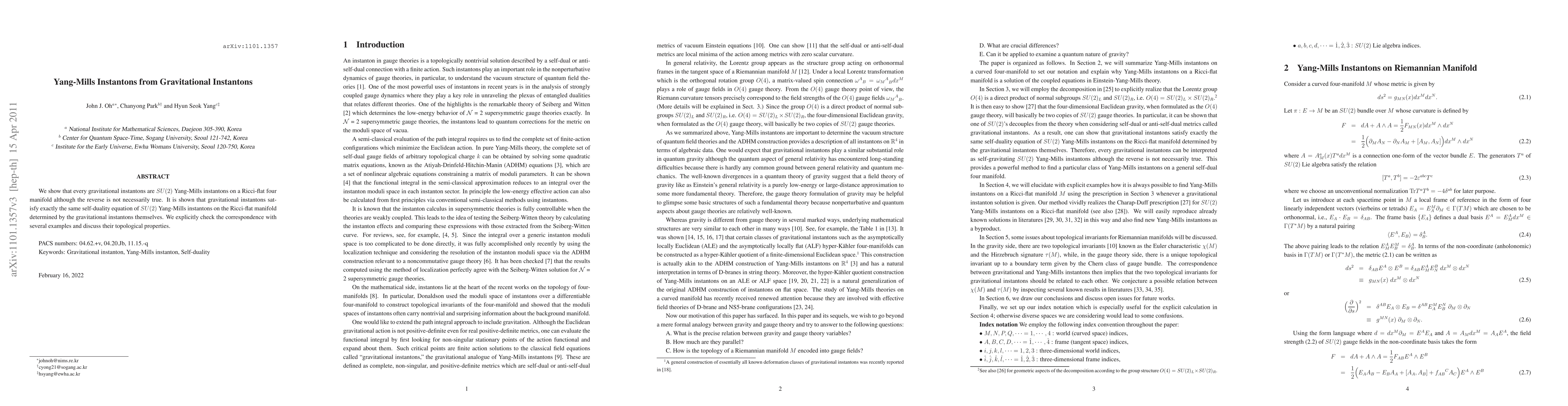 This paper demonstrates that gravitational instantons correspond to SU(2) Yang-Mills instantons on Ricci-flat four-manifolds, satisfying the same self-duality equations, and explores their topological properties through several examples.