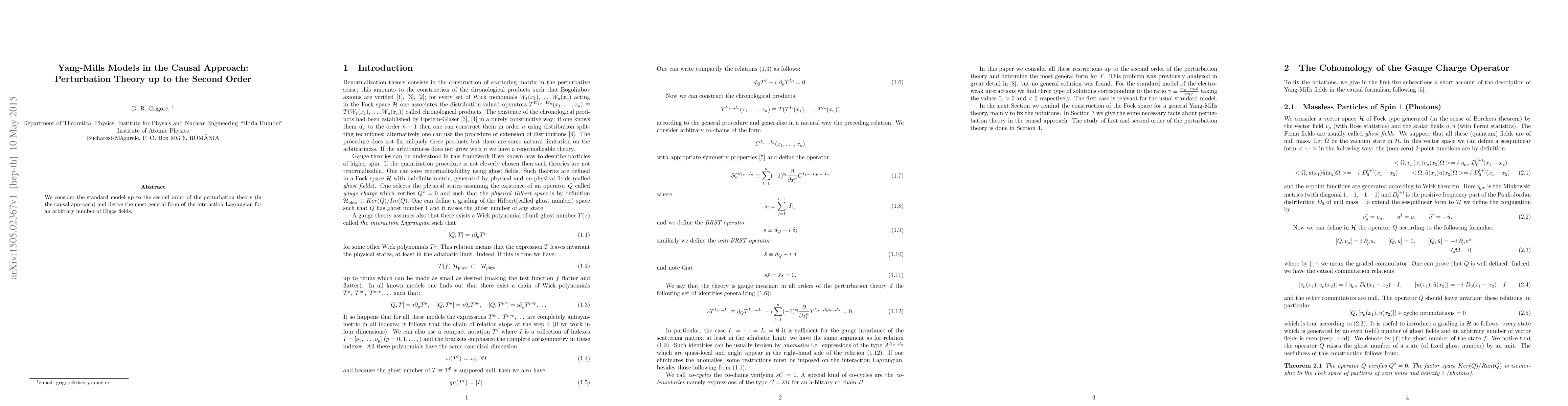 We consider the standard model up to the second order of the perturbation theory (in the causal approach) and derive the most general form of the interaction Lagrangian for an arbitrary number of Higgs fields.