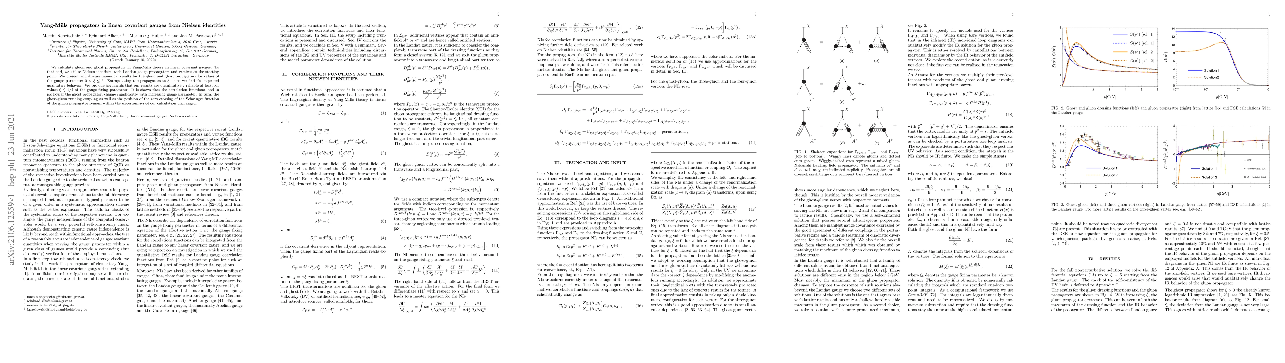This research calculates gluon and ghost propagators in Yang-Mills theory using Nielsen identities and linear covariant gauges. It finds significant changes in correlation functions and the ghost propagator with increasing gauge parameter, while the ghost-gluon coupling and the gluon propagator's zero crossing remain stable within calculation uncertainties.