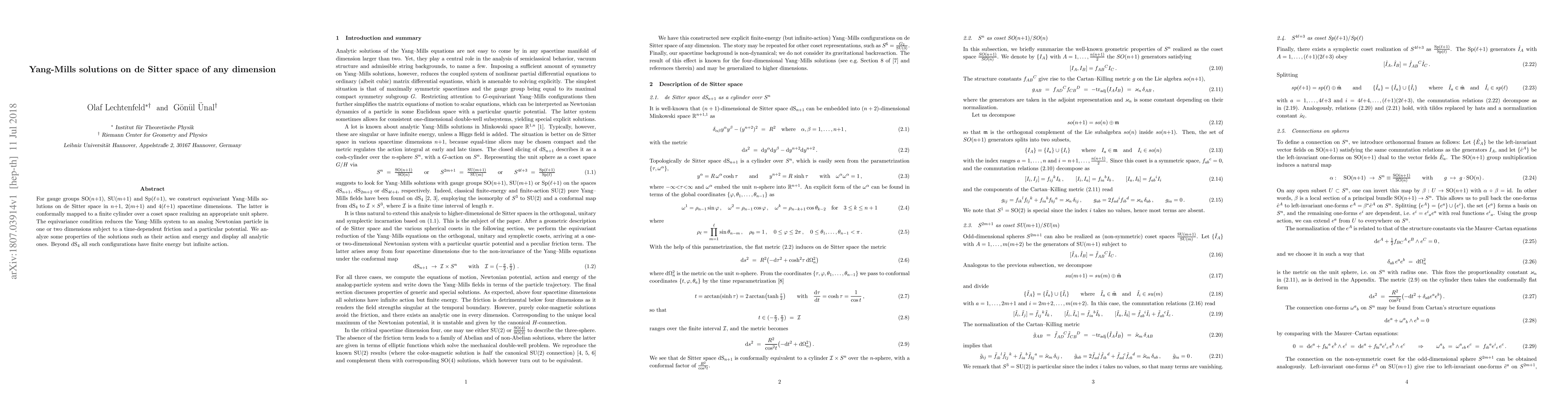 This paper constructs equivariant Yang-Mills solutions for gauge groups SO, SU, and Sp on de Sitter space across various dimensions, reducing the Yang-Mills system to a simplified Newtonian-like model. It finds that solutions beyond dS₄ possess finite energy but infinite action.