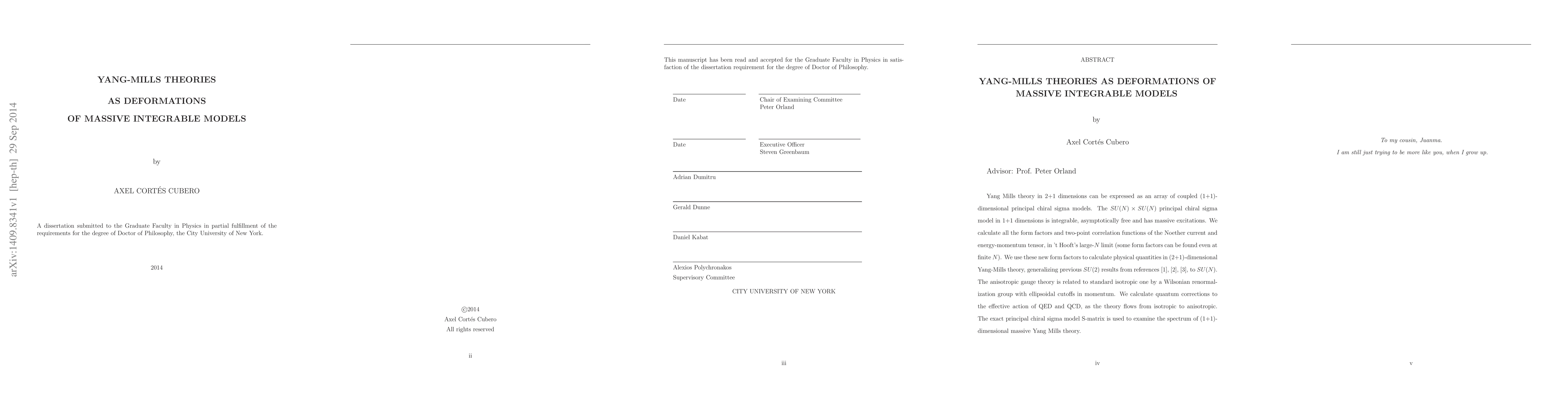 Yang Mills theory in 2+1 dimensions can be expressed as an array of coupled (1+1)-dimensional principal chiral sigma models. The $SU(N)\times SU(N)$ principal chiral sigma model in 1+1 dimensions is integrable, asymptotically free and has massive excitations. We calculate all the form factors and two-point correlation functions of the Noether current and energy-momentum tensor, in 't~Hooft's large-$N$ limit (some form factors can be found even at finite $N$). We use these new form factors to calculate physical quantities in (2+1)-dimensional Yang-Mills theory, generalizing previous $SU(2)$ results from Orland to $SU(N)$. The anisotropic gauge theory is related to standard isotropic one by a Wilsonian renormalization group with ellipsoidal cutoffs in momentum. We calculate quantum corrections to the effective action of QED and QCD, as the theory flows from isotropic to anisotropic. The exact principal chiral sigma model S-matrix is also used to examine the spectrum of (1+1)-dimensional massive Yang Mills theory.